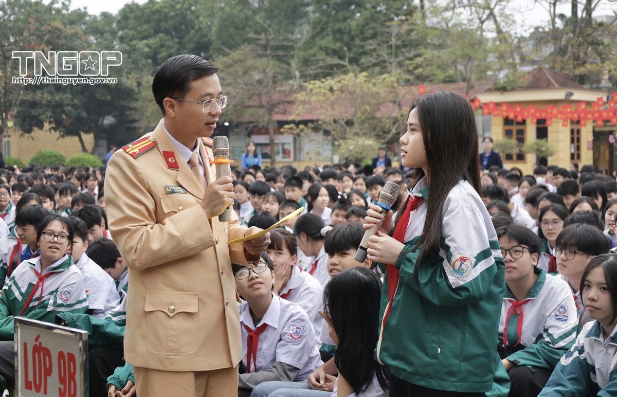 Sáng 9/3, tại trường THCS Hương Sơn (phường Gia Sàng), hơn 1.000 đoàn viên, thanh niên, học sinh và Nhân dân trên địa bàn phường đã cùng tham gia chương trình Giao lưu tuyên truyền pháp luật về trật tự an toàn giao thông năm 2026 do Ban Thường vụ Tỉnh đoàn phối hợp với Phòng Cảnh sát giao thông (Công an tỉnh) và các đơn vị liên quan tổ chức.
