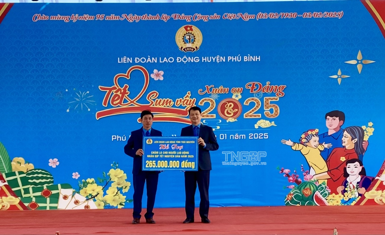 “Tết sum vầy - Xuân ơn Đảng” năm 2025 do Liên đoàn Lao động huyện Phú Bình tổ chức. Đây là một trong những hoạt động ý nghĩa mỗi dịp Tết đến, Xuân về, góp phần giúp đoàn viên công đoàn, người lao động có hoàn cảnh khó khăn được đón Tết cổ truyền đầy đủ, vui tươi; là nguồn cổ vũ, động viên giúp người lao động gắn bó, cống hiến với cơ quan, đơn vị, doanh nghiệp.