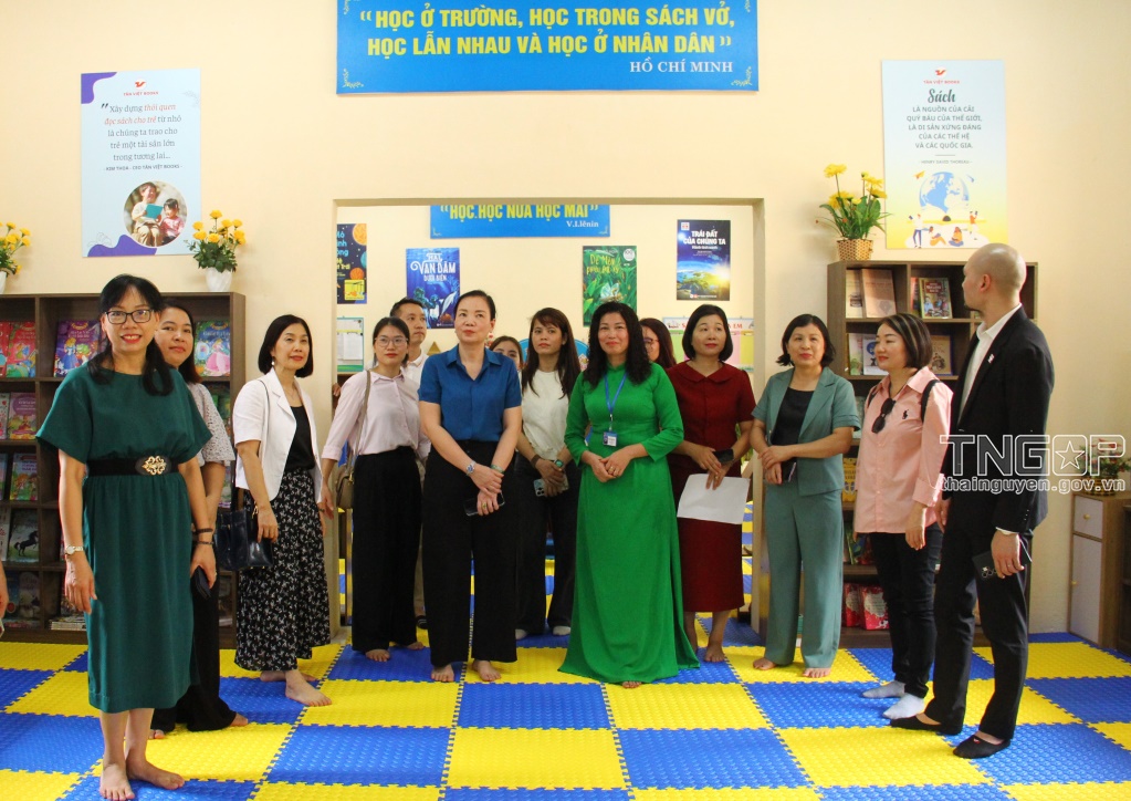 Các đại biểu tham quan phòng thư viện của Trường Tiểu học Thần Sa do BNI Amazon Chapter hỗ trợ