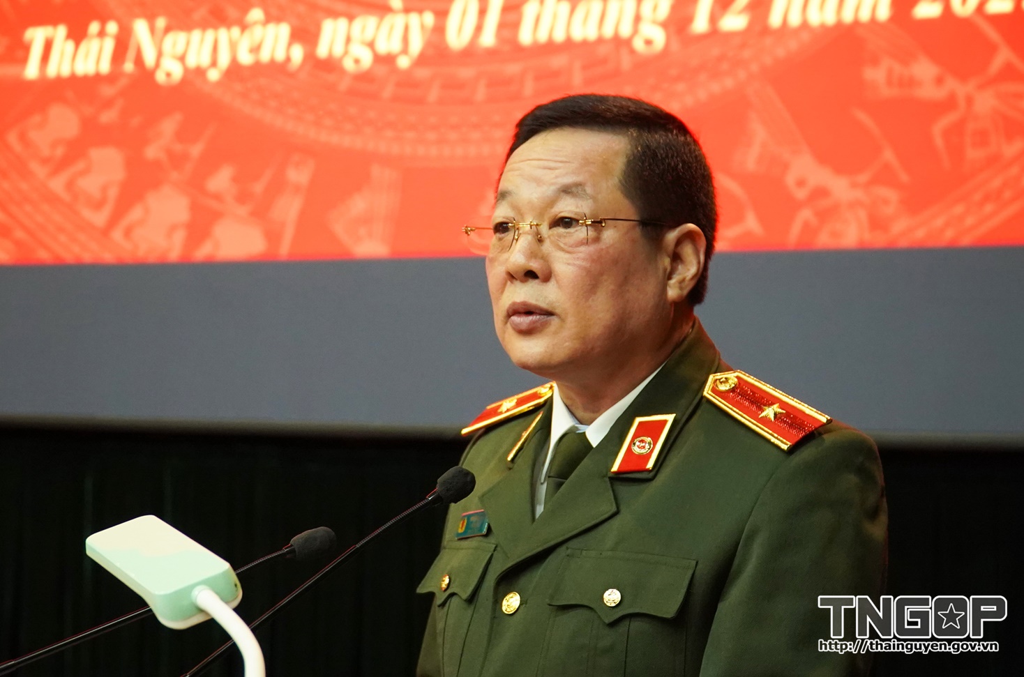 Thiếu tướng Bùi Đức Hải, Ủy viên BTV Tỉnh ủy, Giám đốc Công an tỉnh phát biểu tại buổi Lễ