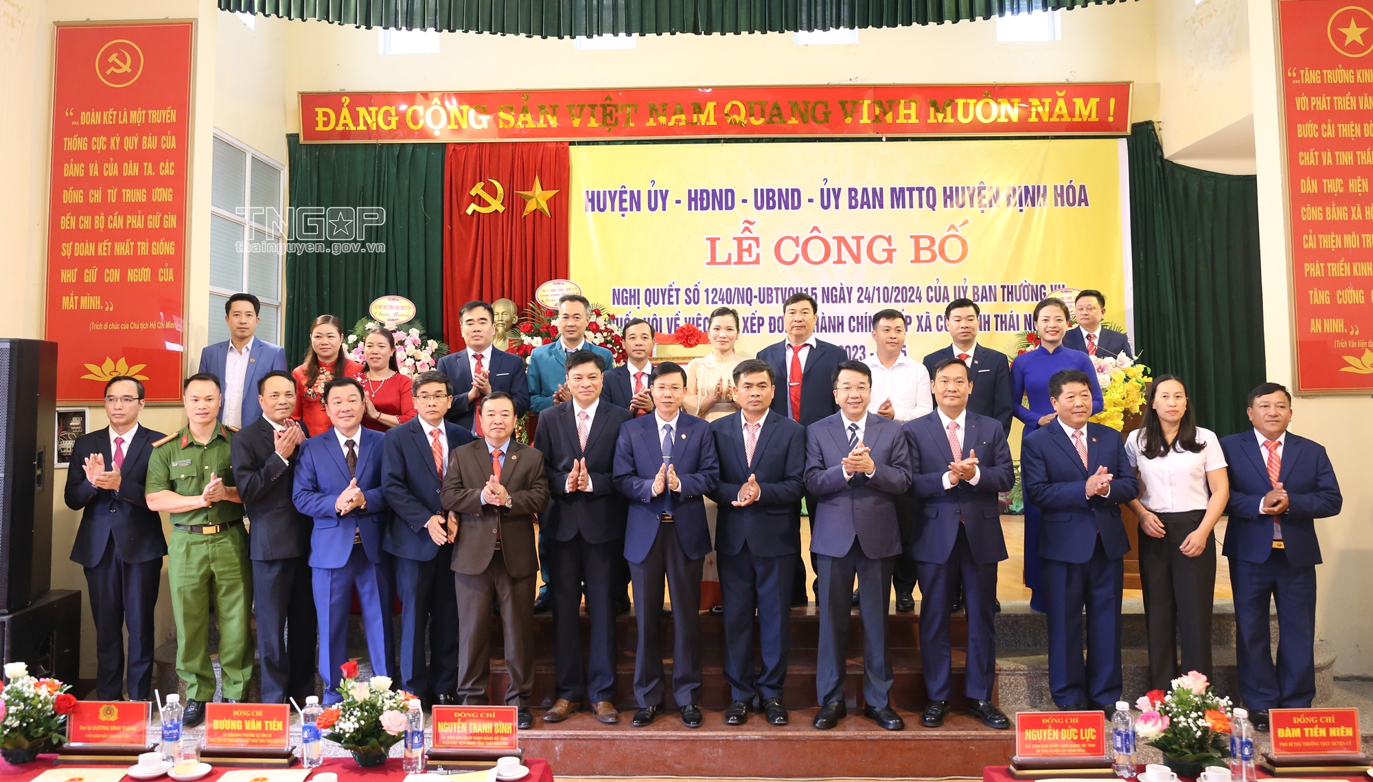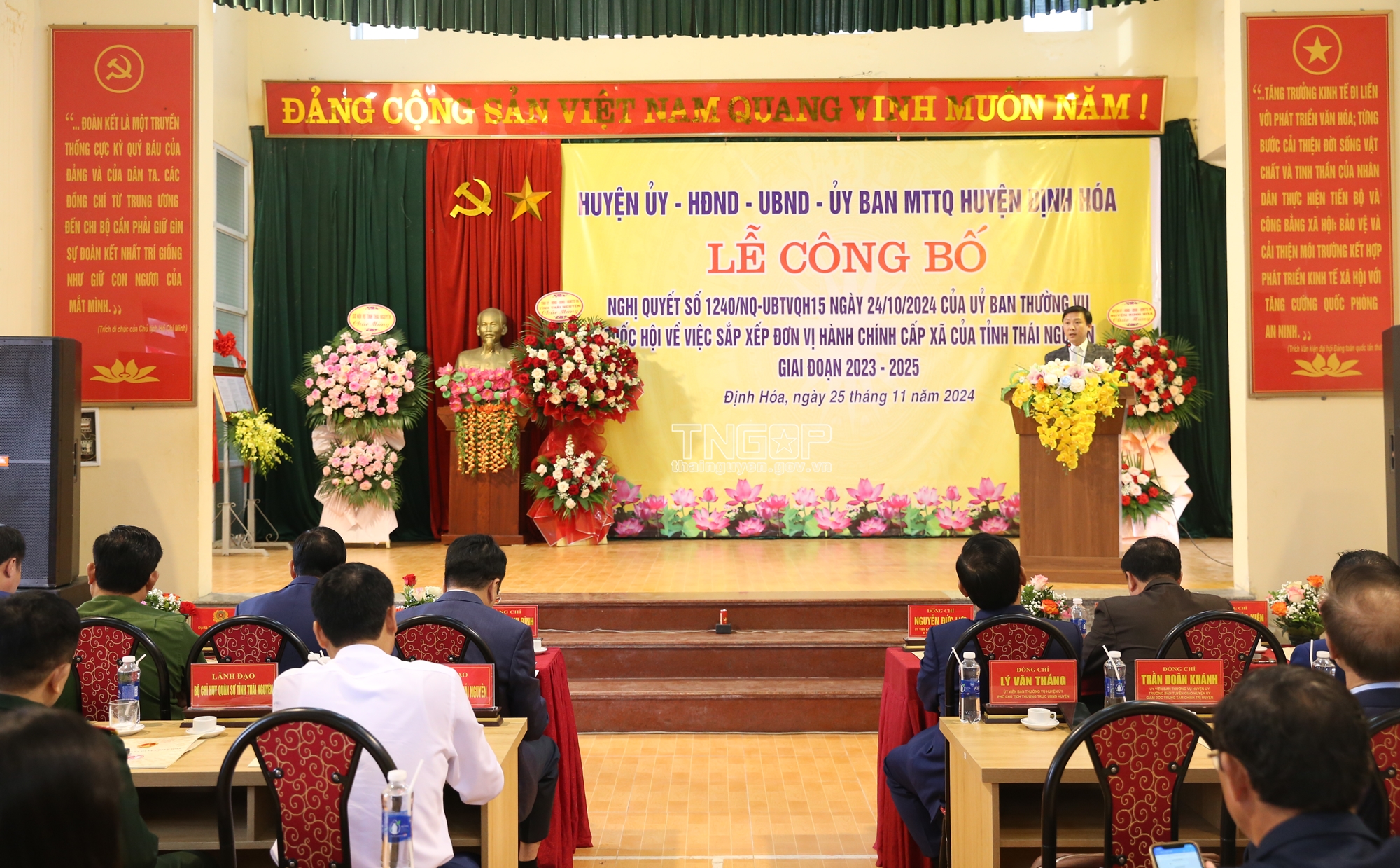Sáng 25/11, huyện Định Hóa tổ chức Lễ công bố Nghị quyết số 1240/NQ-UBTVQH15 ngày 24/10/2024 của Ủy ban Thường vụ Quốc hội về việc sắp xếp đơn vị hành chính tỉnh Thái Nguyên giai đoạn 2023 - 2025 (Nghị quyết số 1240).