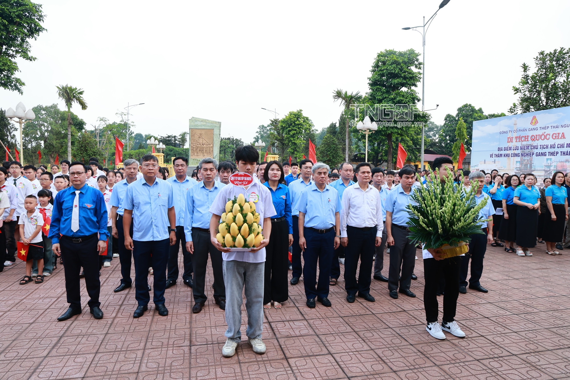 Đoàn đại biểu và các em học sinh dâng hương tại Khu di tích lịch sử quốc gia địa điểm lưu niệm Bác Hồ về thăm khu công nghiệp Gang Thép Thái Nguyên