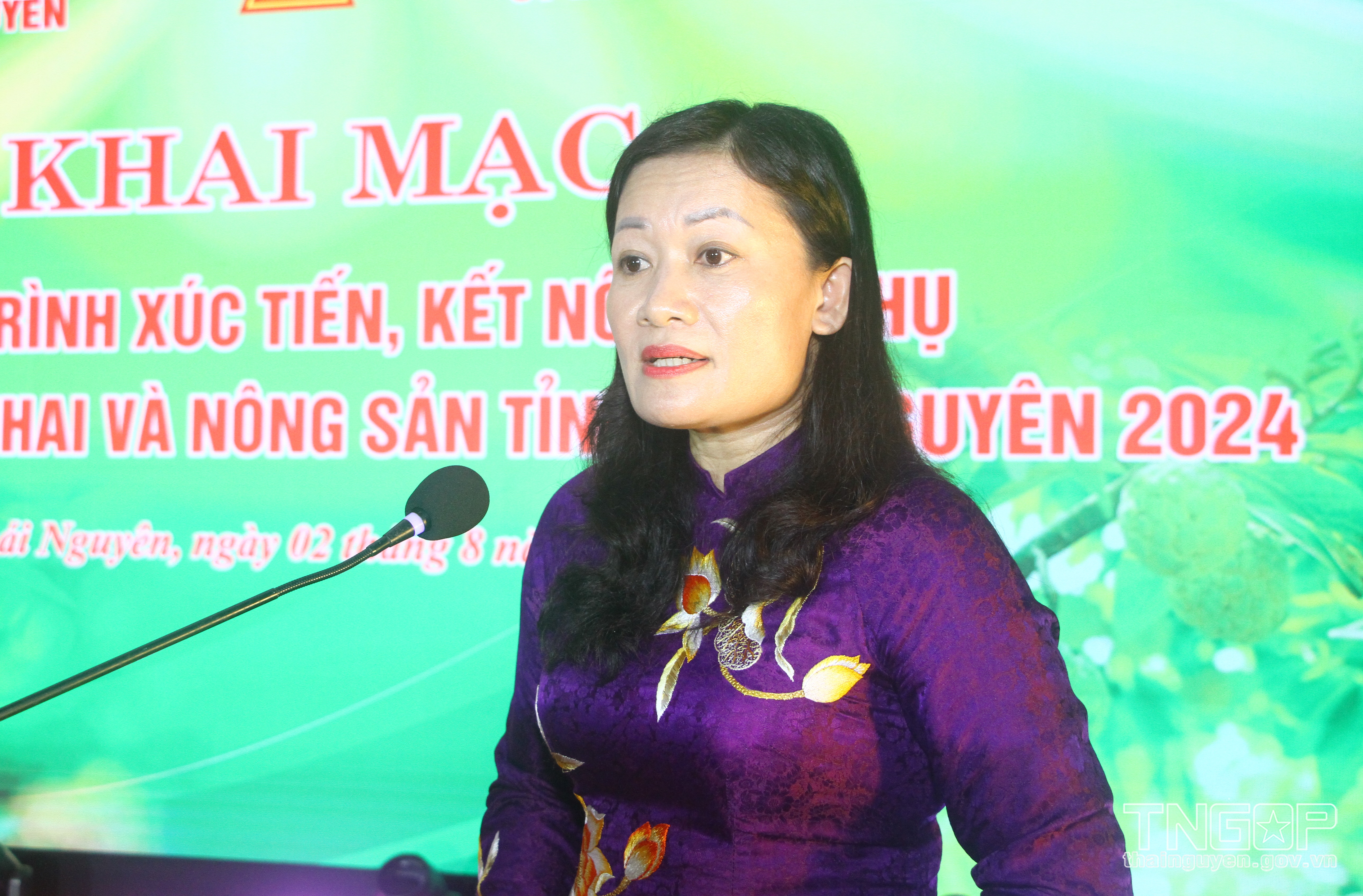 Phát biểu tại Chương trình, đồng chí Mai Thị Thúy Nga, Phó Chủ tịch HĐND tỉnh đề nghị huyện Võ Nhai tiếp tục chỉ đạo và hướng dẫn bà con nông dân ứng dụng khoa học kỹ thuật nhằm tăng sản lượng và nâng cao chất lượng sản phẩm; thực hiện đúng quy trình sản xuất, quản lý và bảo đảm chất lượng tốt nhất, an toàn từ khâu sản xuất, thu hái, lưu thông đến tiêu thụ. Đồng chí cũng đề nghị huyện chủ động kết nối, tiêu thụ sản phẩm, đa dạng hóa thị trường; khuyến khích người dân tham gia tiêu thụ trên nền tảng online và mạng xã hội; tạo điều kiện thuận lợi nhất cho người trồng na, doanh nghiệp, và thương nhân trong, ngoài tỉnh trong công tác thu hoạch, chế biến, và tiêu thụ na. Các sở, ngành của tỉnh cần chú trọng hỗ trợ sản phẩm chủ lực, đặc trưng và tiềm năng, sản phẩm nông nghiệp nông thôn tiêu biểu của tỉnh; duy trì và mở rộng mạng lưới phân phối, ổn định thị trường tiêu thụ sản phẩm trong và ngoài nước; nâng cao năng lực cạnh tranh và đẩy mạnh xuất khẩu. Đồng chí cũng khuyến khích các doanh nghiệp và thương nhân tích cực khảo sát, kết nối và ký hợp đồng liên kết với các doanh nghiệp, HTX, nhóm hộ sản xuất, bao tiêu sản phẩm na Võ Nhai và các sản phẩm nông sản tỉnh Thái Nguyên.