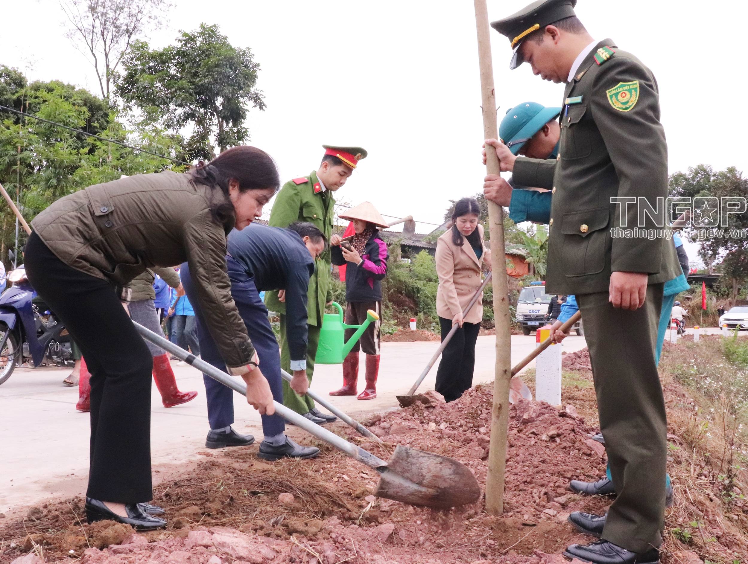 Lãnh đạo Sở Nông nghiệp và Phát triển nông thôn, lãnh đạo huyện Phú Bình và đại biểu tham gia trồng cây tại Lễ phát động Tết trồng cây "Đời đời nhớ ơn Bác Hồ” Xuân Ất Tỵ năm 2025