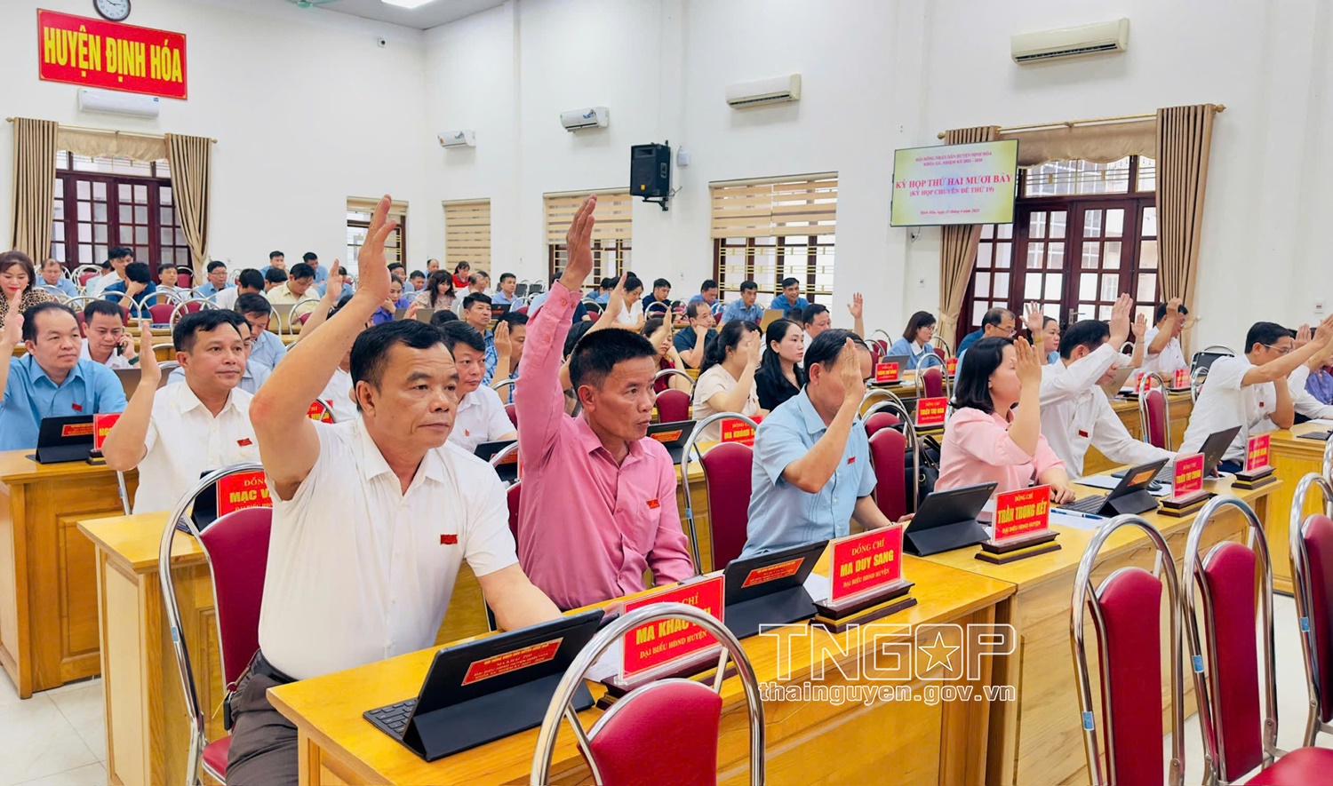 Tại Kỳ họp, đại biểu HĐND huyện đã nghiên cứu, thảo luận, phân tích đối với các nội dung trình và đã thống nhất cao thông qua 3 nghị quyết gồm: Nghị quyết thông qua chủ trương sắp xếp đơn vị hành chính cấp xã tỉnh Thái Nguyên trên địa bàn huyện Định Hóa; Nghị quyết thông qua chủ trương thành lập tỉnh Thái Nguyên trên cơ sở sắp xếp, nhập tỉnh Bắc Kạn và tỉnh Thái Nguyên; Nghị quyết phê chuẩn quyết toán ngân sách Nhà nước huyện Định Hóa năm 2024.