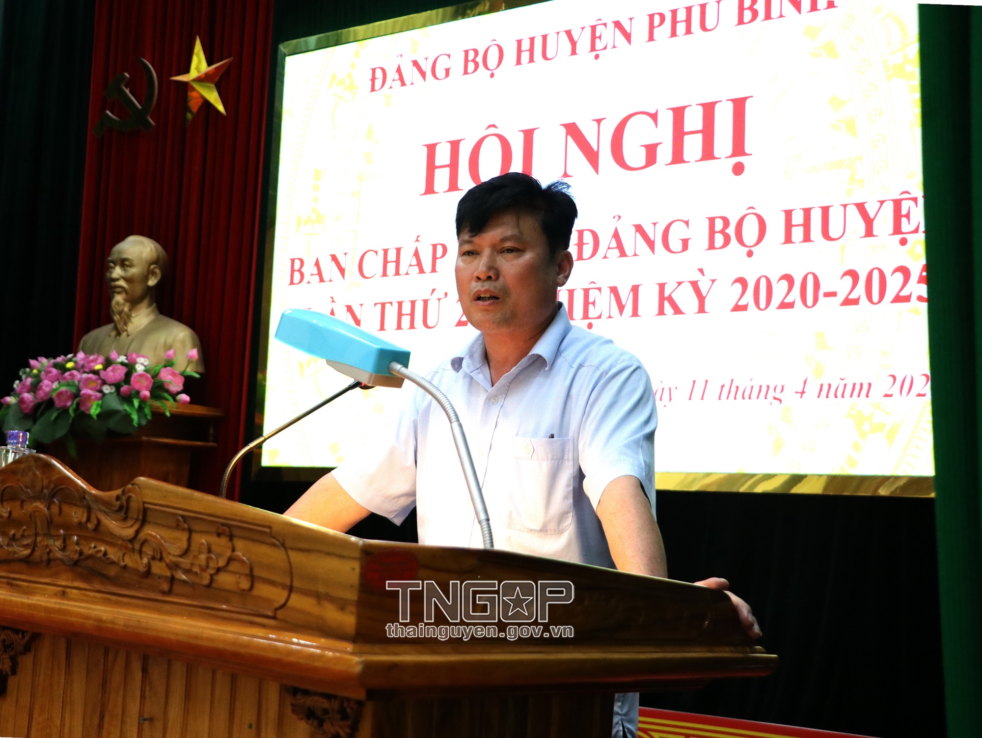 Đồng chí Dương Quang Bạo, Phó Bí thư Huyện ủy Phú Bình phát biểu tại Hội nghị
