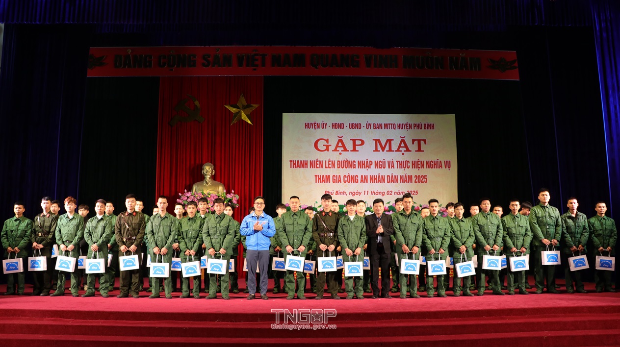 Nhằm kịp thời động viên các thanh niên của huyện trước khi lên đường thực hiện nhiệm vụ bảo vệ Tổ quốc, sáng 11/2, Huyện ủy - HĐND - UBND - Ủy ban MTTQ huyện Phú Bình tổ chức Gặp mặt thanh niên lên đường nhập ngũ và thực hiện nghĩa vụ tham gia Công an nhân dân năm 2025.