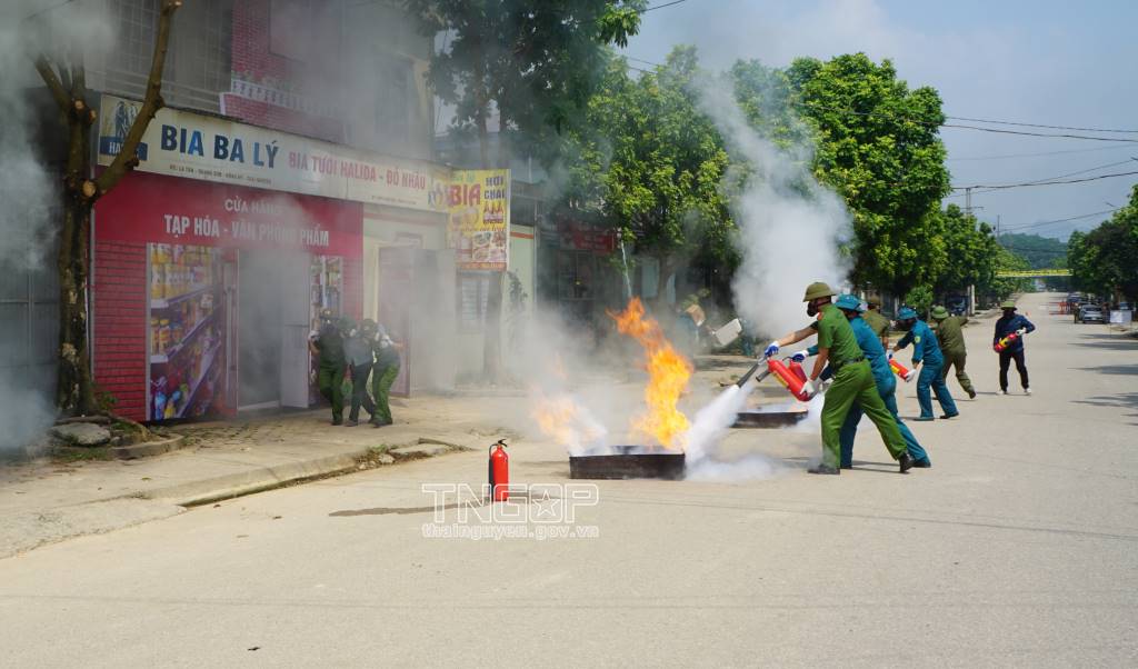 Các lực lượng diễn tập tình huống phòng cháy chữa cháy