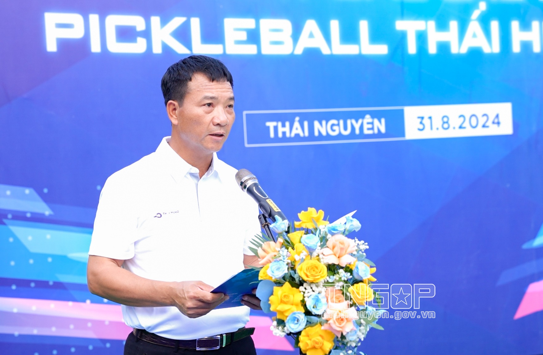 Ông Trịnh Gia Tâm, thành viên HĐQT, Phó Tổng Giám đốc Công ty, Chủ tịch danh dự Câu lạc bộ Pickleball phát biểu tại chương trình
