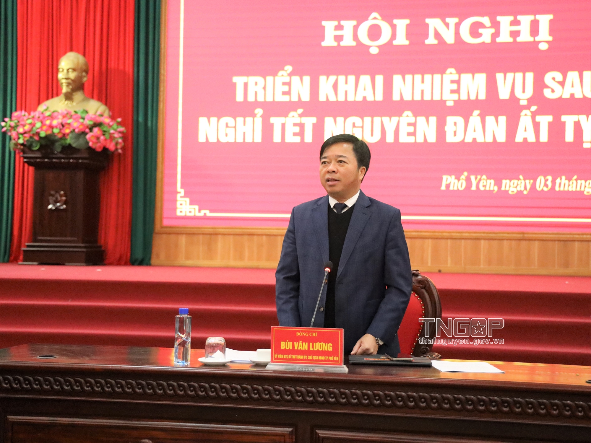 Sáng ngày 3/2 (mùng 6, tháng Giêng), Thành ủy Phổ Yên tổ chức Hội nghị triển khai nhiệm vụ sau kỳ nghỉ tết Nguyên đán năm Ất Tỵ 2025 để đánh giá tình hình thực hiện nhiệm vụ trọng tâm trước, trong và sau Tết. Đồng chí Bùi Văn Lương, Ủy viên BTV Tỉnh ủy, Bí thư Thành ủy, Chủ tịch HĐND thành phố dự và chủ trì Hội nghị.