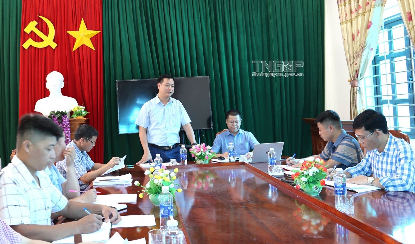 Đồng chí Tạ Văn Lộc, Giám đốc Trung tâm Thông tin tỉnh Thái Nguyên, thành viên Ban Chỉ đạo triển khai xóa nhà tạm, nhà dột nát của tỉnh phát biểu tại buổi làm việc tại xã Xuân Dương