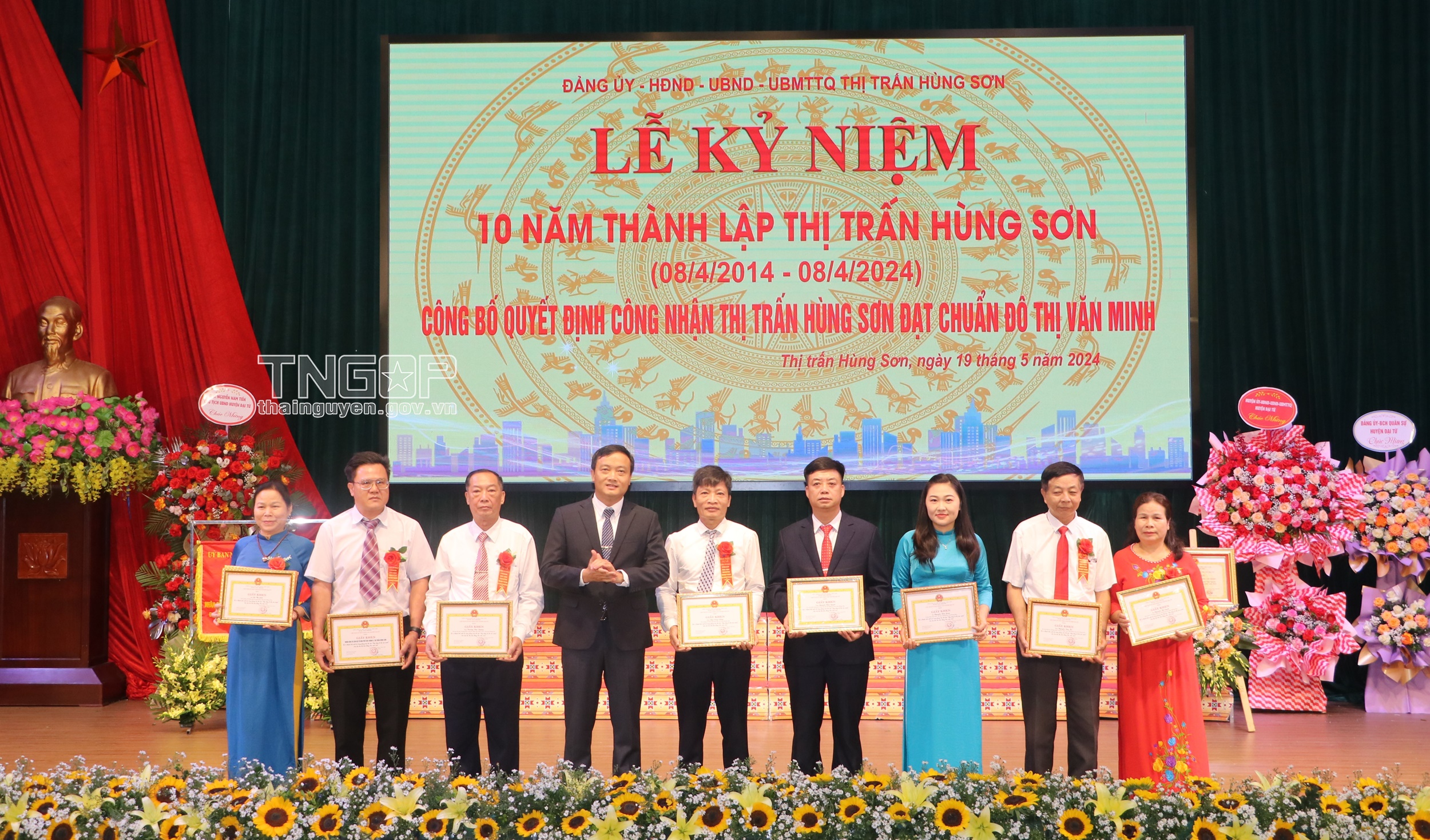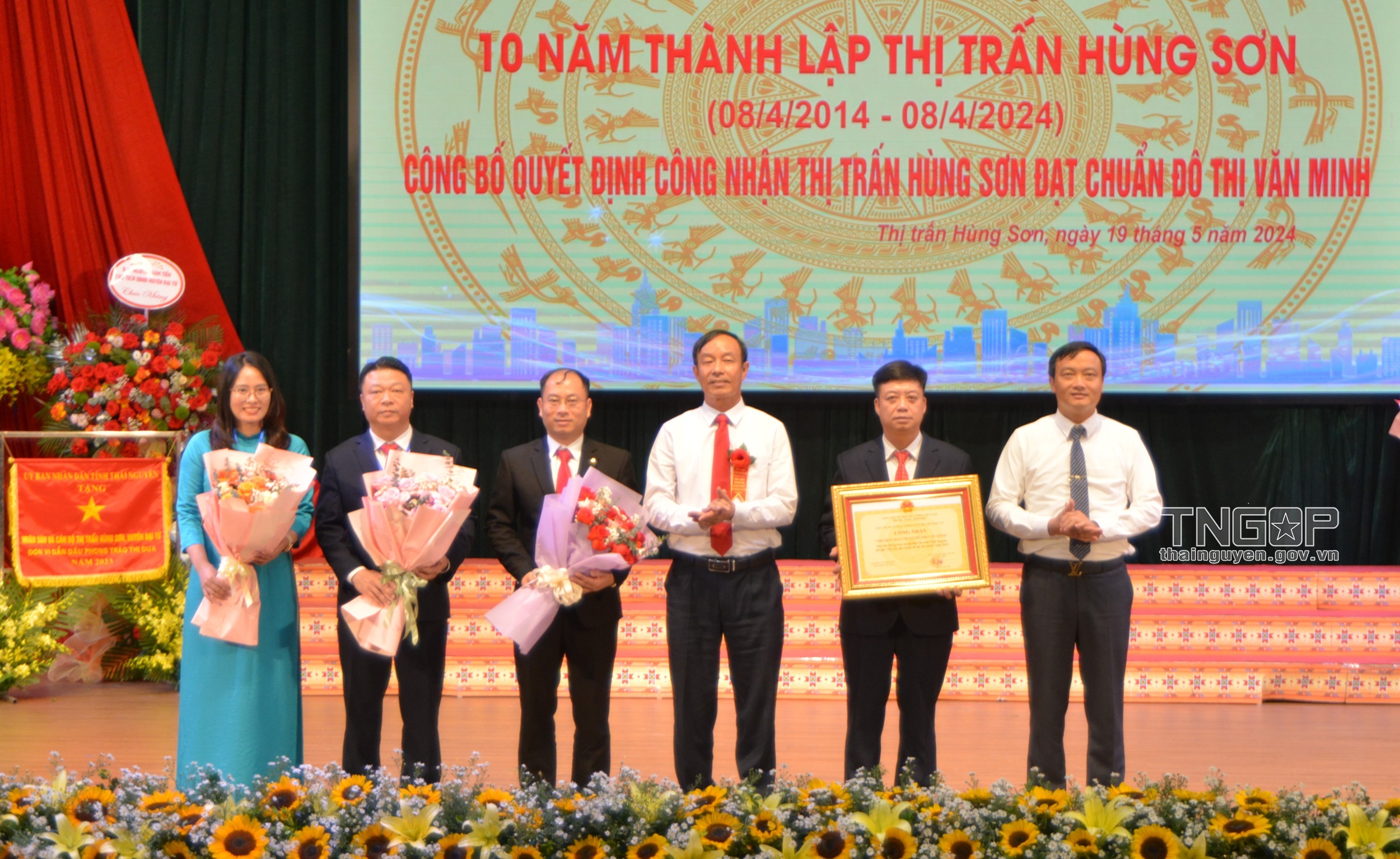Ngày 19/5, Đảng uỷ, HĐND - UBND - Ủy ban MTTQ thị trấn Hùng Sơn (Đại Từ) tổ chức Lễ kỷ niệm 10 năm Thành lập thị trấn Hùng Sơn (8/4/2014 - 8/4/2024) và công bố Quyết định thị trấn Hùng Sơn đạt chuẩn đô thị văn minh. Dự chương trình có các đồng chí Thường trực Huyện ủy, Thường trực HĐND, lãnh đạo UBND huyện Đại Từ; các đồng chí nguyên lãnh đạo Huyện ủy - HĐND, UBND huyện Đại Từ.