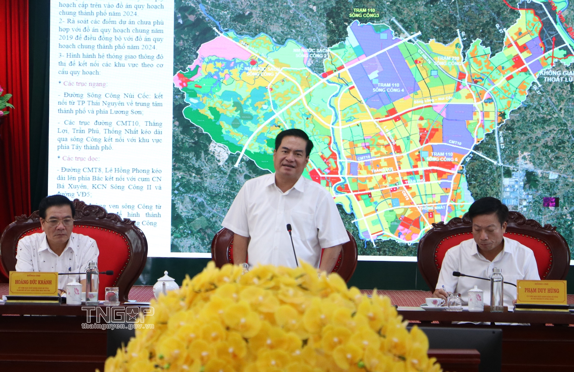 Theo báo cáo, UBND TP. Sông Công đã hoàn thành việc lập, thẩm định và phê duyệt quy hoạch phân khu cho 7/7 phường nội thị; trong đó, 6 phường đã hoàn tất, còn phường Phố Cò vẫn đang thực hiện điều chỉnh quy hoạch phân khu tỷ lệ 1/2000. Việc phê duyệt sẽ được tiến hành sau khi Đồ án điều chỉnh quy hoạch chung của thành phố được thông qua. Đồng thời, quy hoạch phân khu cho 3/3 xã cũng đã được triển khai, với mục tiêu xã Tân Quang và Bá Xuyên sẽ trở thành phường vào năm 2025. Ngoài ra, Dự án Khu đô thị sinh thái thể thao hồ Ghềnh Chè và quy hoạch Khu công nghiệp Sông Công II giai đoạn 2 cũng đang được triển khai tích cực.