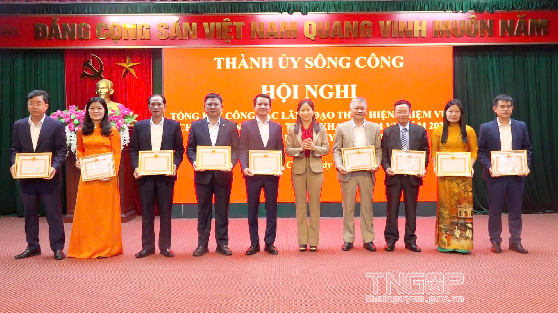Nhân dịp này, Ban Thường vụ Thành ủy Sông Công đã trao tặng Giấy khen cho 27 tập thể và 19 cá nhân có thành tích xuất sắc trong công tác xây dựng Đảng năm 2024.