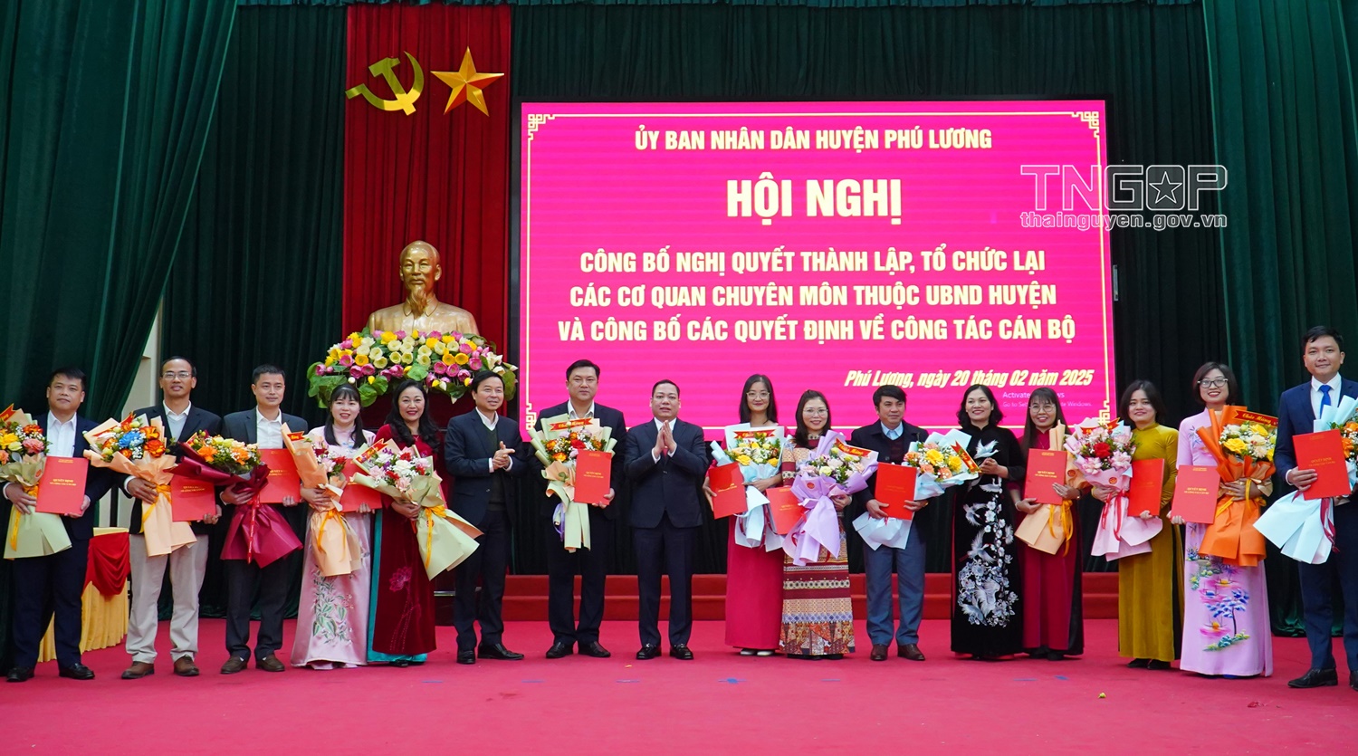 Chiều 20/2, UBND huyện Phú Lương tổ chức Hội nghị công bố nghị quyết thành lập, tổ chức lại các cơ quan chuyên môn thuộc UBND huyện và công bố các quyết định về công tác cán bộ.