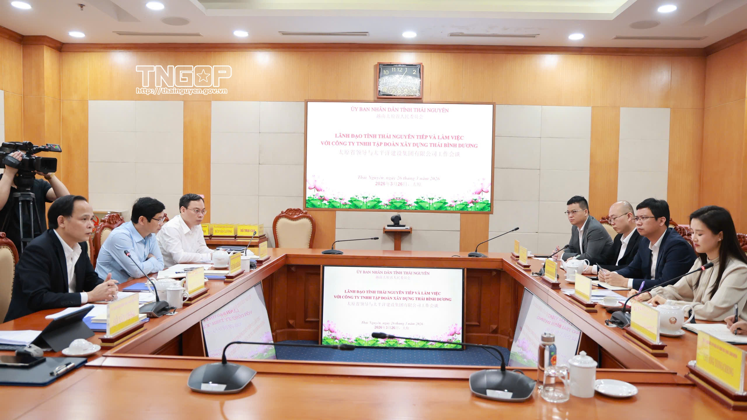 Sáng 26/3, đồng chí Nguyễn Linh, Ủy viên Ban Thường vụ Tỉnh ủy, Phó Chủ tịch UBND tỉnh Thái Nguyên đã tiếp và làm việc với Đoàn công tác của Công ty TNHH Tập đoàn Xây dựng Thái Bình Dương nhằm trao đổi thông tin, thống nhất các nội dung thảo luận, hướng tới ký kết biên bản ghi nhớ hợp tác trong thời gian tới.