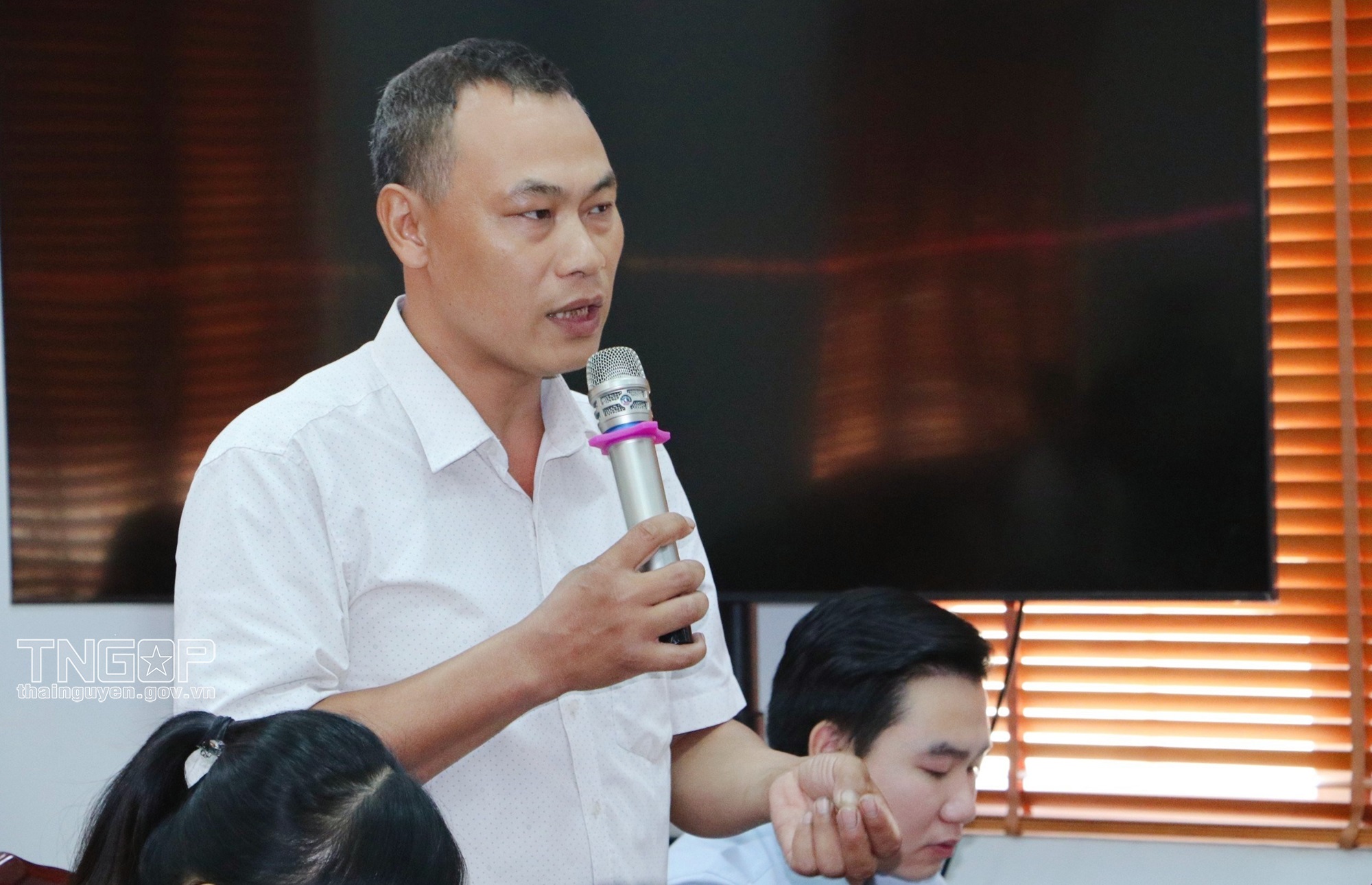 Ông Ngô Văn Hợi, Giám đốc Hợp tác xã chè Phúc Thành (xã Phúc Trìu, TP. Thái Nguyên) nêu ý kiến tại Hội nghị