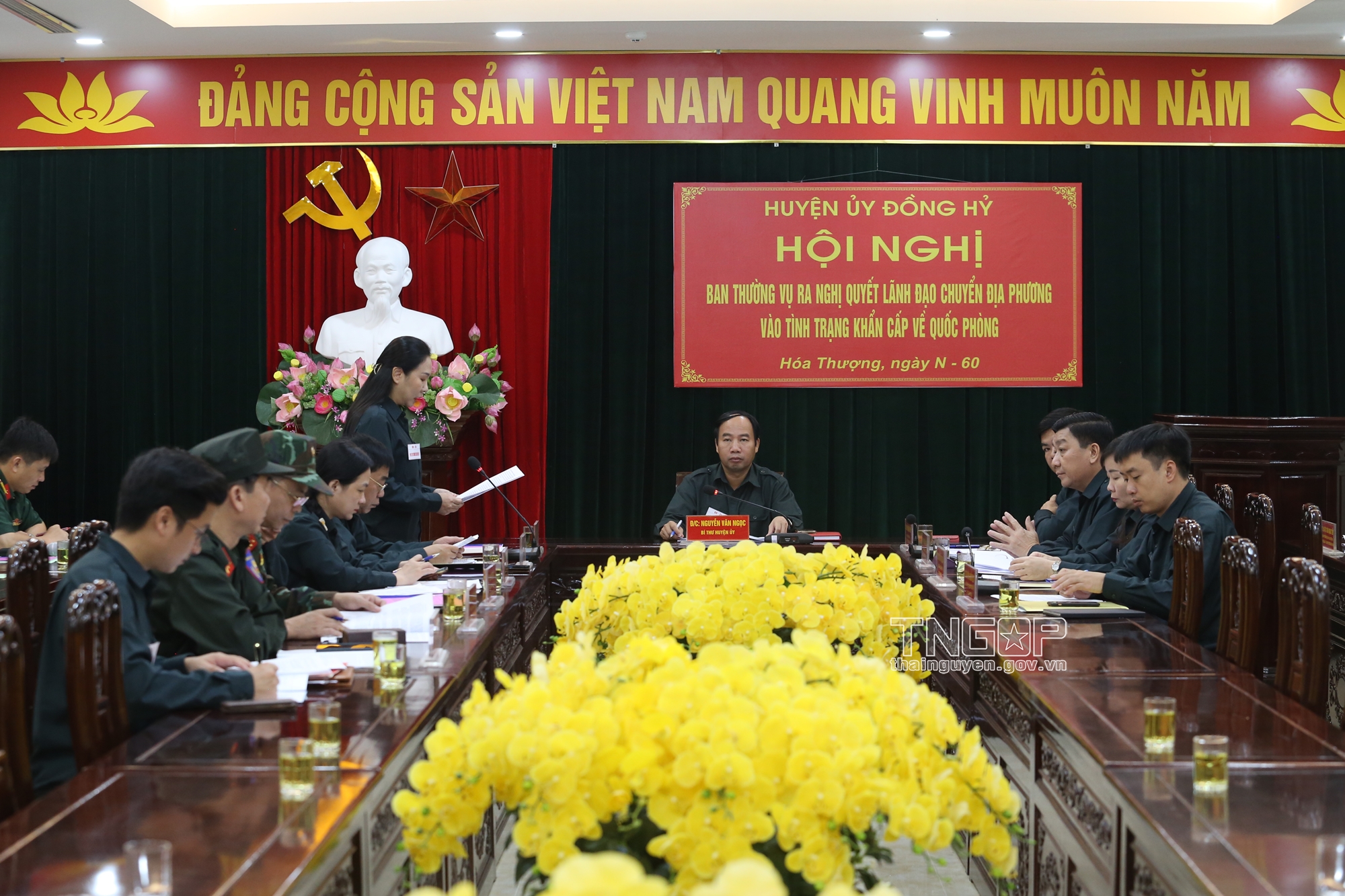 Ngay sau Hội nghị kiểm tra công tác chuẩn bị, Ban Chỉ đạo diễn tập KVPT huyện Đồng Hỷ đã tổ chức thực hành diễn tập thử với các nội dung quan trọng theo kịch bản như: Triển khai các hội nghị ra Nghị quyết lãnh đạo chuyển địa phương vào tình trạng khẩn cấp về quốc phòng; Hội nghị xử trí tình huống A2 trong tình trạng khẩn cấp về quốc phòng...
