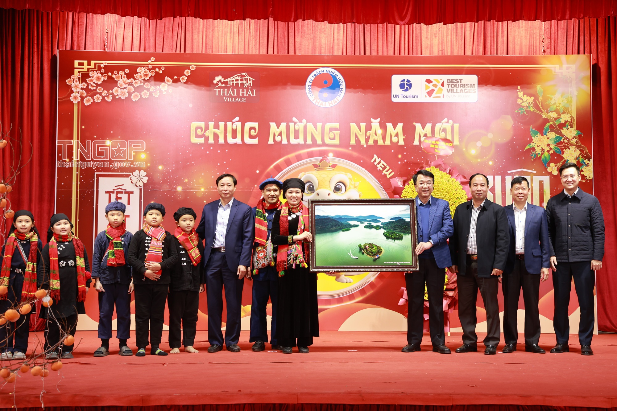 Tại TP. Thái Nguyên, Đoàn đã đến thăm, động viên Công ty TNHH Thái Hải Thái Nguyên tại Khu bảo tồn làng nhà sàn dân tộc sinh thái Thái Hải. Với trên 150 người, thuộc 3 thế hệ sinh sống, Khu bảo tồn làng nhà sàn dân tộc sinh thái Thái Hải là nơi gìn giữ, bảo tồn, phát huy những nét văn hóa truyền thống của đồng bào dân tộc Tày. Đặc biệt, niềm vui đến với Làng nhà sàn Thái Hải đầu năm mới 2025 khi được nhận giải thưởng Homestay Asean 2025 và được công nhận là một trong 2 sản phẩm du lịch OCOP 5 sao trong toàn quốc về dịch vụ du lịch cộng đồng, du lịch sinh thái và điểm du lịch.