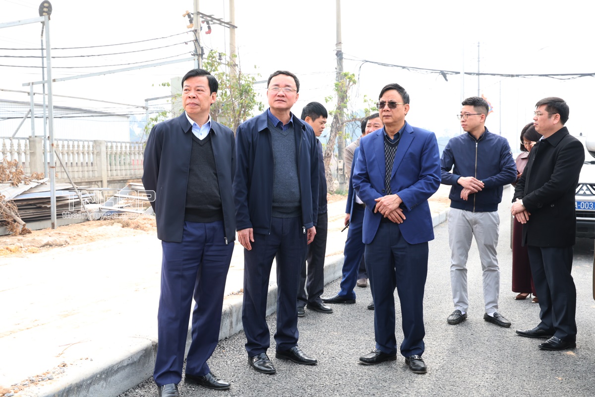Lãnh đạo tỉnh kiểm tra tiến độ đường nối ĐT.261 và ĐT.266 xã Điềm Thuỵ, huyện Phú Bình