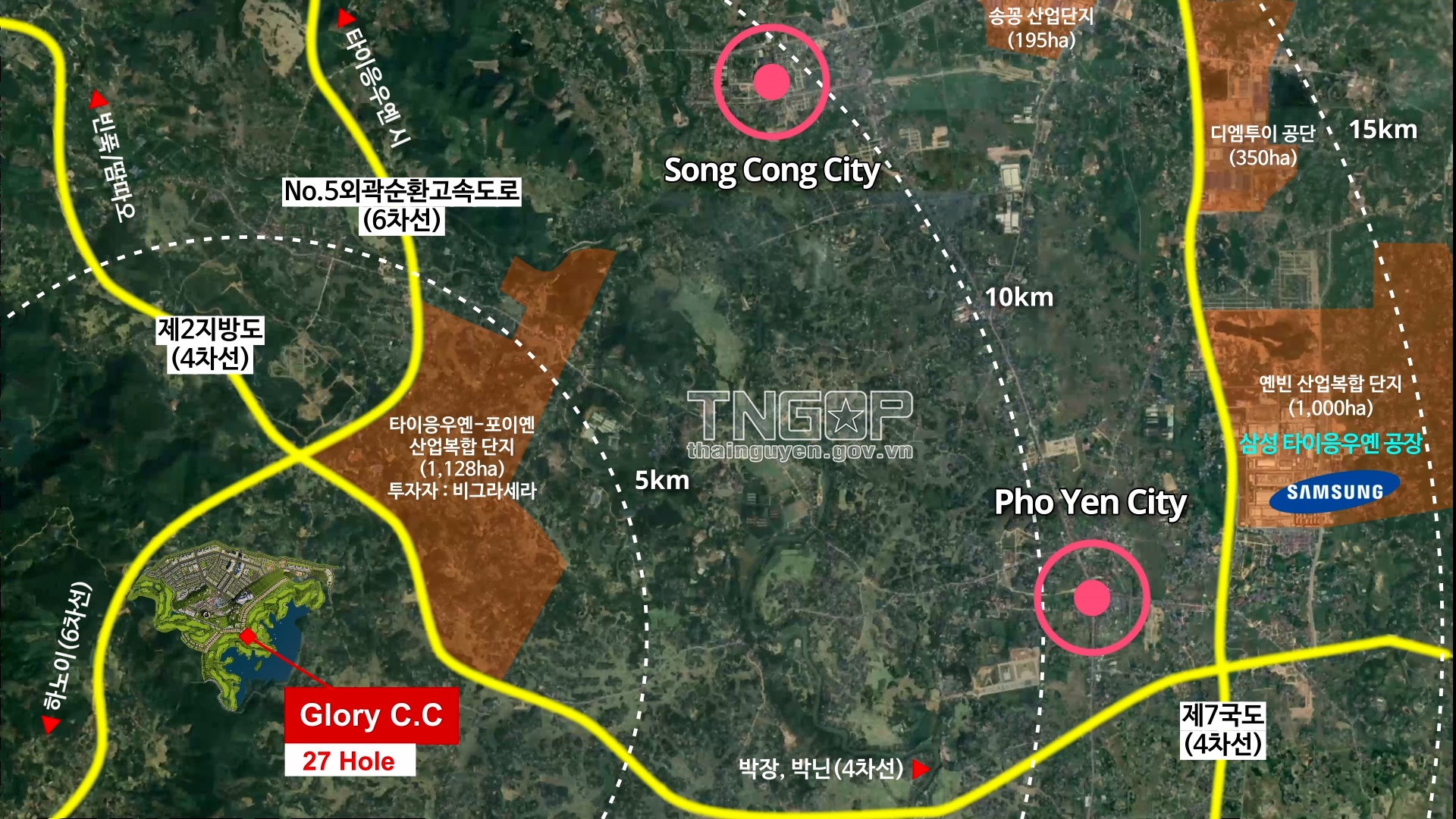 Khu phức hợp đô thị nghỉ dưỡng tại khu vực hồ Suối Lạnh, xã Thành Công (TP. Phổ Yên), có quy mô khoảng 10.000 tỷ đồng, được quy hoạch phân khu 1/2000 với diện tích 437 ha, trong đó có khu đô thị sinh thái nghỉ dưỡng và Dự án sân golf Glory.