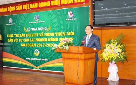 Chiều ngày 22/6, Bộ Nông nghiệp và PTNT phối hợp với Bộ Thông tin truyền thông và Hội Nhà báo Việt Nam đã tổ chức buổi lễ phát động “Cuộc thi báo chí viết về Nông thôn mới gắn với cơ cấu lại ngành nông nghiệp” giai đoạn 2017-2020. Tham dự buổi phát động có Phó Thủ tướng Chính phủ, Trưởng Ban Chỉ đạo các Chương trình mục tiêu quốc gia Vương Đình Huệ, Bộ trưởng Bộ Nông nghiệp và PTNT, Phó Trưởng Ban Chỉ đạo các Chương trình mục tiêu quốc gia Nguyễn Xuân Cường, đại diện các cơ quan Bộ ngành khác, và các cơ quan thông tấn, báo chí trên cả nước.