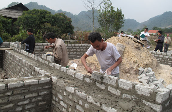 Đơn vị thi công đang đẩy nhanh tiến độ xây dựng điểm trường mầm non tại xóm Ngọc Sơn 2, xã Thần Sa (Võ Nhai).