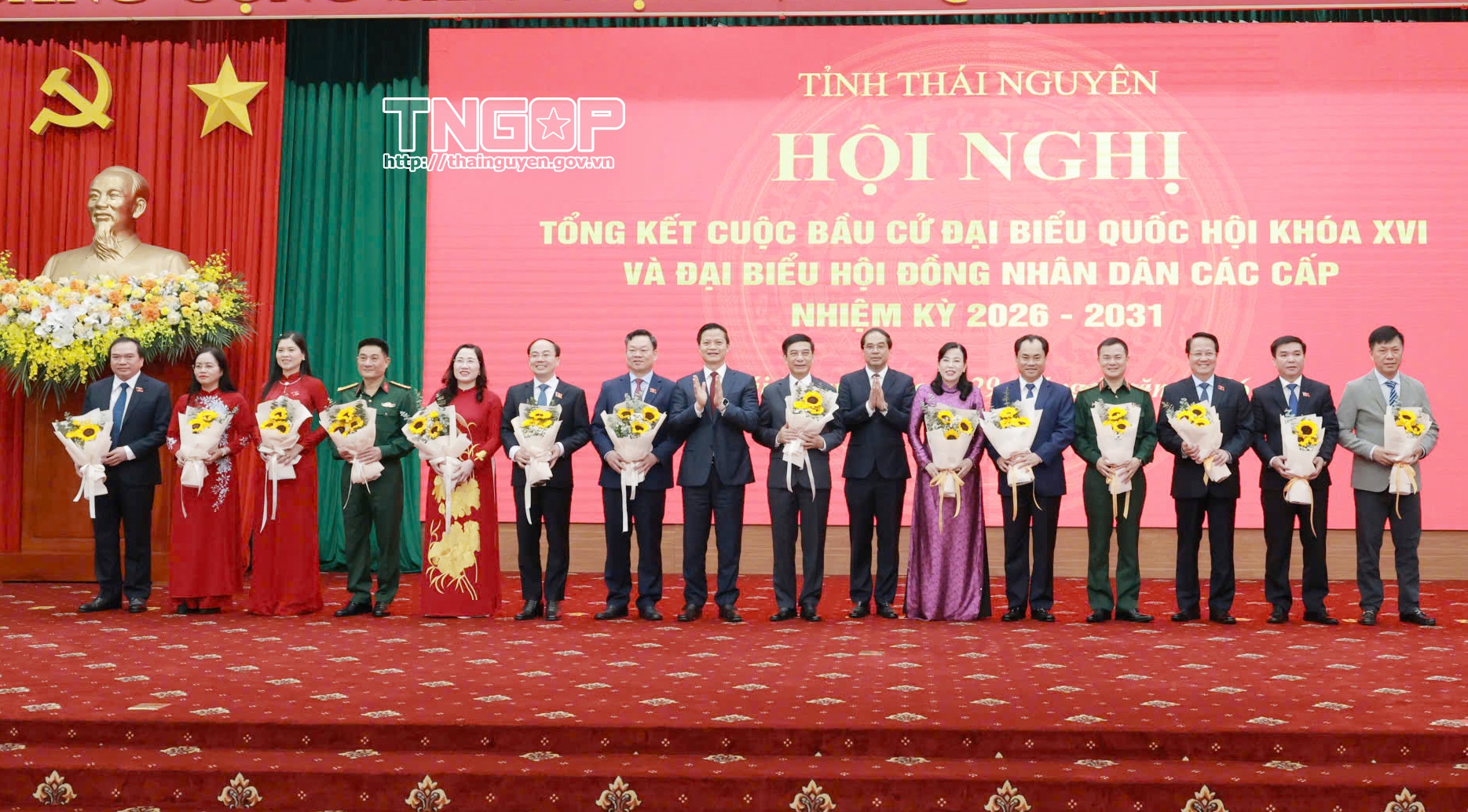 Chiều 21/3, Hội đồng Bầu cử quốc gia tổ chức Họp báo trong nước và quốc tế, công bố Nghị quyết về kết quả bầu cử và danh sách 500 người trúng cử đại biểu Quốc hội khóa XVI, nhiệm kỳ 2026 - 2031. Trong đó có 10 người trúng cử đại biểu Quốc hội khóa XVI tỉnh Thái Nguyên.