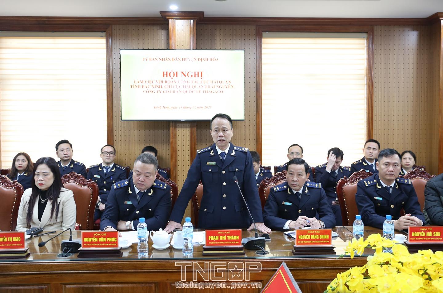 Cục Hải quan Bắc Ninh, trong đó có Chi cục Hải quan Thái Nguyên đã, đang và sẽ luôn đồng hành, tạo mọi điều kiện thuận lợi cho doanh nghiệp (DN) thông quan nhanh hàng hóa, nhằm giảm thời gian, chi phí khi thực hiện thủ tục hải quan, từ đó góp phần tăng thu ngân sách cho địa phương - Đây là khẳng định của ông Phạm Chí Thành, Cục trưởng Cục Hải quan tỉnh Bắc Ninh tại buổi làm việc với lãnh đạo huyện Định Hóa và Công ty CP Quốc tế Thagaco vào sáng 18/2 tại UBND huyện Định Hóa.