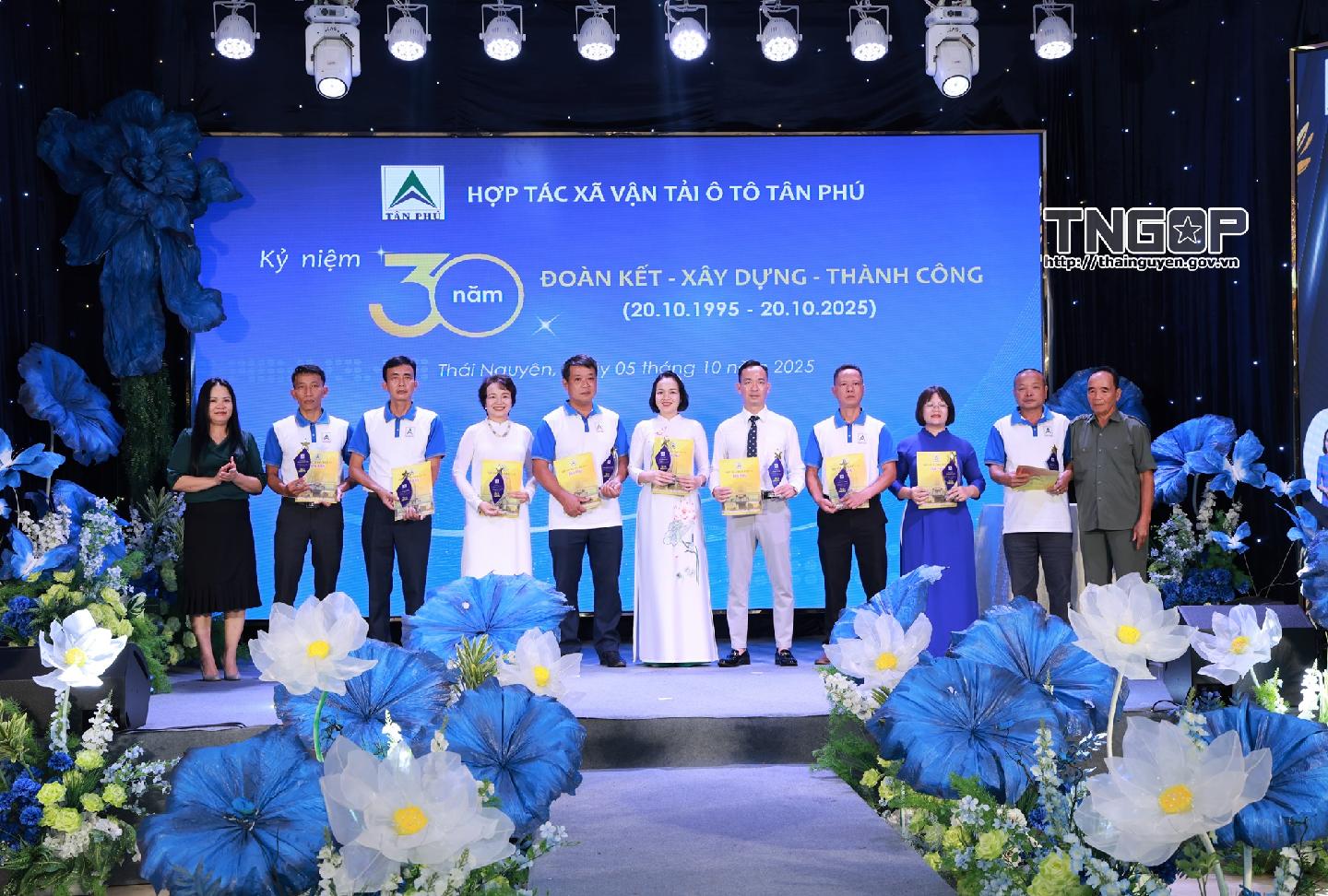 Ngày 5/10, Hợp tác xã (HTX) Vận tải ô tô Tân Phú tổ chức kỷ niệm 30 năm thành lập (20/10/1995 - 20/10/2025) với chủ đề “Đoàn kết - Xây dựng - Thành công”. Dự Chương trình có lãnh đạo Liên minh HTX tỉnh Thái Nguyên, đại diện một số sở, ngành, địa phương, đối tác cùng toàn thể cán bộ, xã viên, người lao động của HTX.