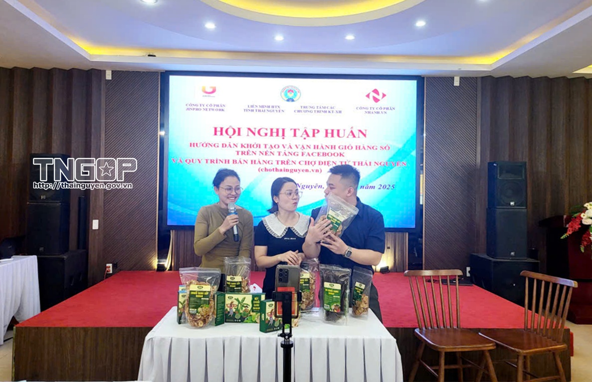 Ngày 5/11, Liên minh Hợp tác xã (HTX) tỉnh Thái Nguyên phối hợp với Công ty cổ phần Truyền thông và Giải trí Jin Pro Network cùng Công ty cổ phần Nhanh.vn - đơn vị đối tác Meta Business Partner (Facebook Việt Nam) tổ chức Hội nghị tập huấn hướng dẫn tạo giỏ hàng số trên nền tảng Facebook và đăng ký sản phẩm, quy trình bán hàng trên Chợ điện tử Thái Nguyên.
