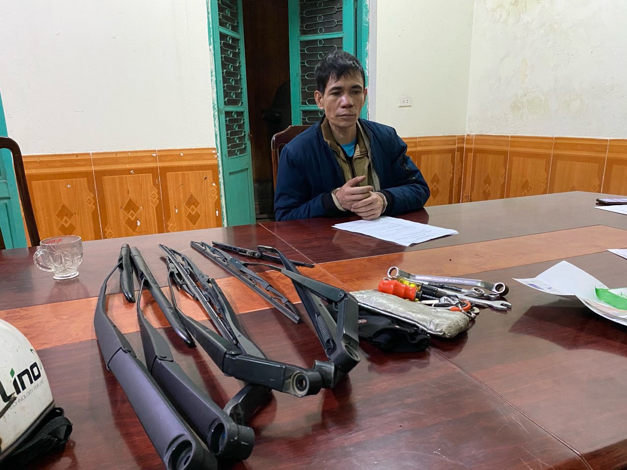 Trước đó, Công an thành phố Sông Công nhận được nhiều phản ánh của quần chúng nhân dân về việc người dân bị mất trộm tài sản là cần gạt mưa của xe ô tô đỗ ở hành lang đường, xảy ra chủ yếu vào thời điểm đêm tối. Ngay sau khi nhận được phản ánh trên, Công an thành phố Sông Công đã chỉ đạo các lực lượng nghiệp vụ tiến hành áp dụng các biện pháp nghiệp vụ điều tra xác minh. Đến hồi 2h45’ ngày 20/01/2024, Tổ công tác của Công an thành phố Sông Công phối hợp với Công an phường Bách Quang, thành phố Sông Công phát hiện đối tượng đang thực hiện hành vi trộm cắp cần gạt mưa tại khu vực phường Bách Quang. Tổ công tác của Công an thành phố đã phối hợp với quần chúng Nhân dân truy đuổi thì đối tượng bỏ chạy đến đường Thắng Lợi kéo dài, thuộc tổ dân phố Mỏ Chè, phường Bách Quang, thành phố Sông Công thì bị bắt giữ. Đối tượng khai tên Ngô Văn Lâm, sinh năm 1980, trú tại thôn Mai Châu, xã Đại Mạch, huyện Đông Anh, thành phố Hà Nội. Tại hiện trường phát hiện 3 bộ cần gạt mưa của xe ô tô, 1 túi da màu trắng bên trong có 4 chiếc cờ lê bằng kim loại và 2 tô vít, Lâm khai nhận 3 bộ cần gạt mưa do vừa trộm cắp được.