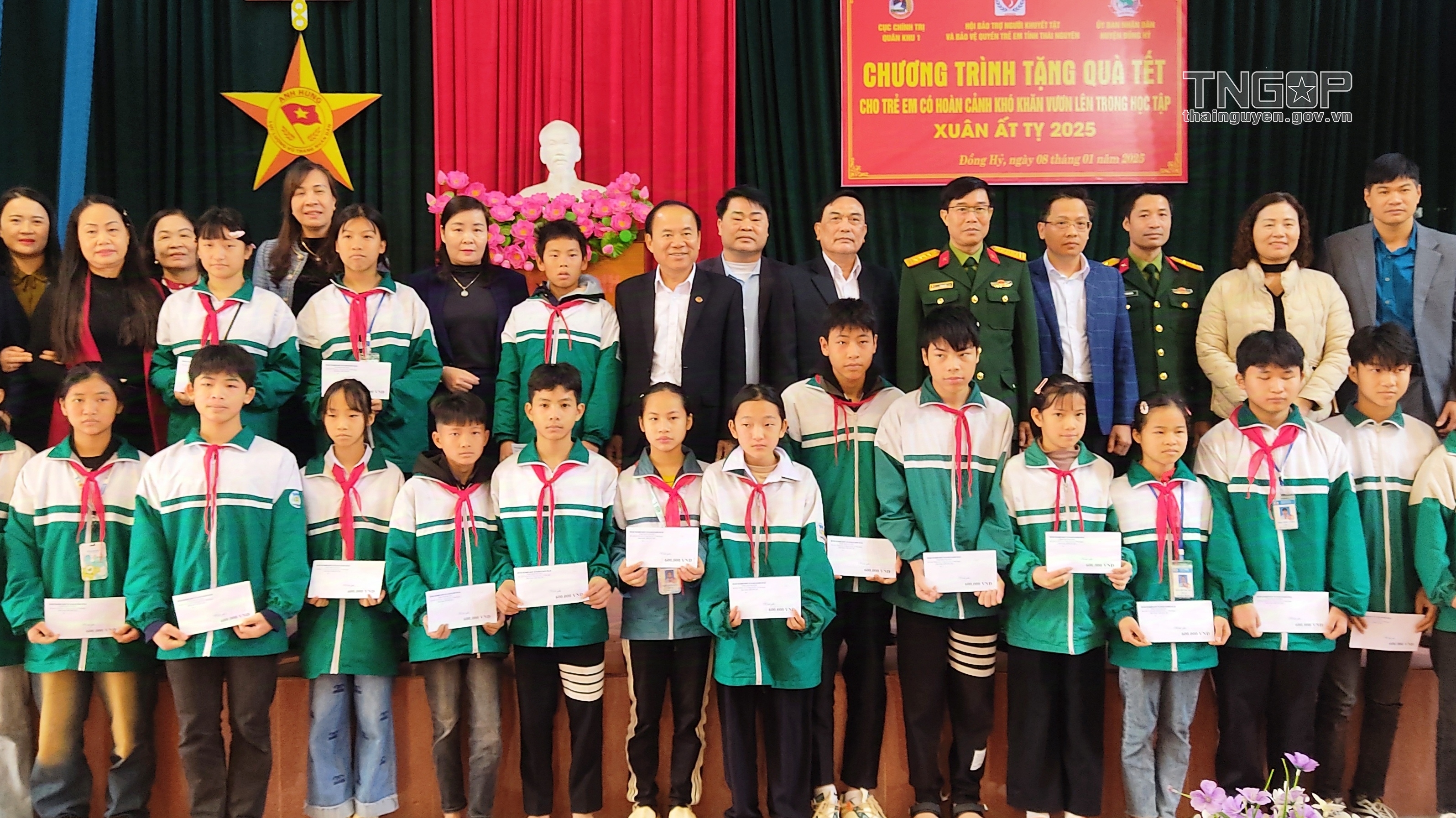 Tại Chương trình, các đại biểu đã trao 100 suất quà, mỗi suất quà trị giá 600 nghìn đồng cho các em học sinh có hoàn cảnh khó khăn của Trường Tiểu học Cây Thị, Trường THCS Cây Thị (Đồng Hỷ). Tổng giá trị quà là 60 triệu đồng từ nguồn hỗ trợ của Cục Chính trị (Quân khu 1).