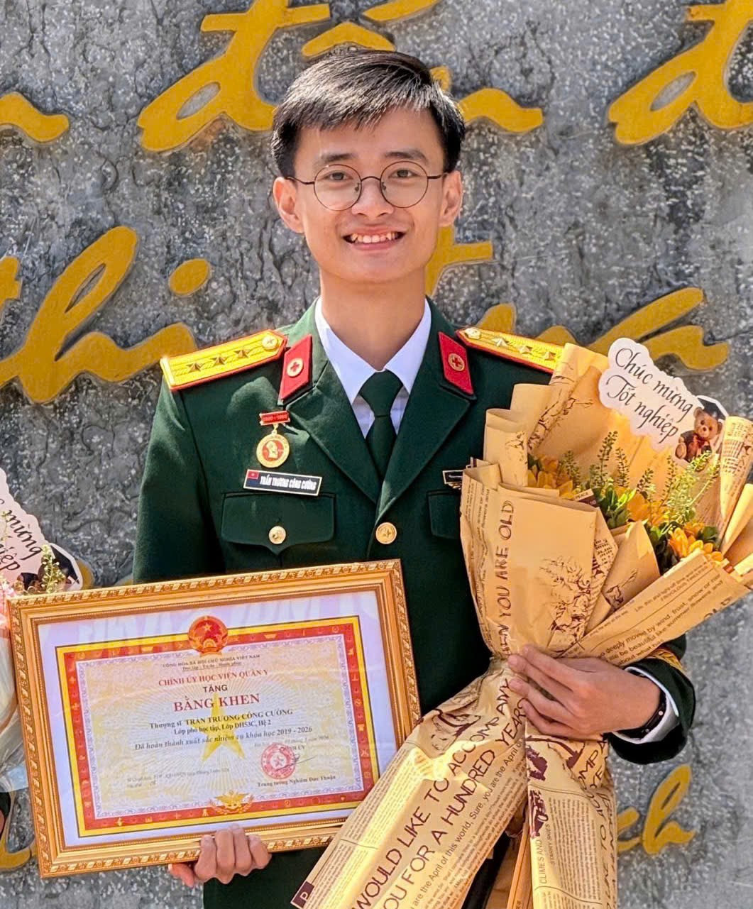 Sự kiên trì ấy dần tích tụ thành trái ngọt. Sau 6,5 năm miệt mài rèn luyện, Lớp phó học tập Lớp DH53C (Hệ 2, Học viện Quân y) Trần Trương Công Cường tốt nghiệp loại giỏi ngành Bác sĩ đa khoa quân y với điểm trung bình toàn khóa là 8,61, trở thành một trong những gương mặt nổi bật của khóa này.