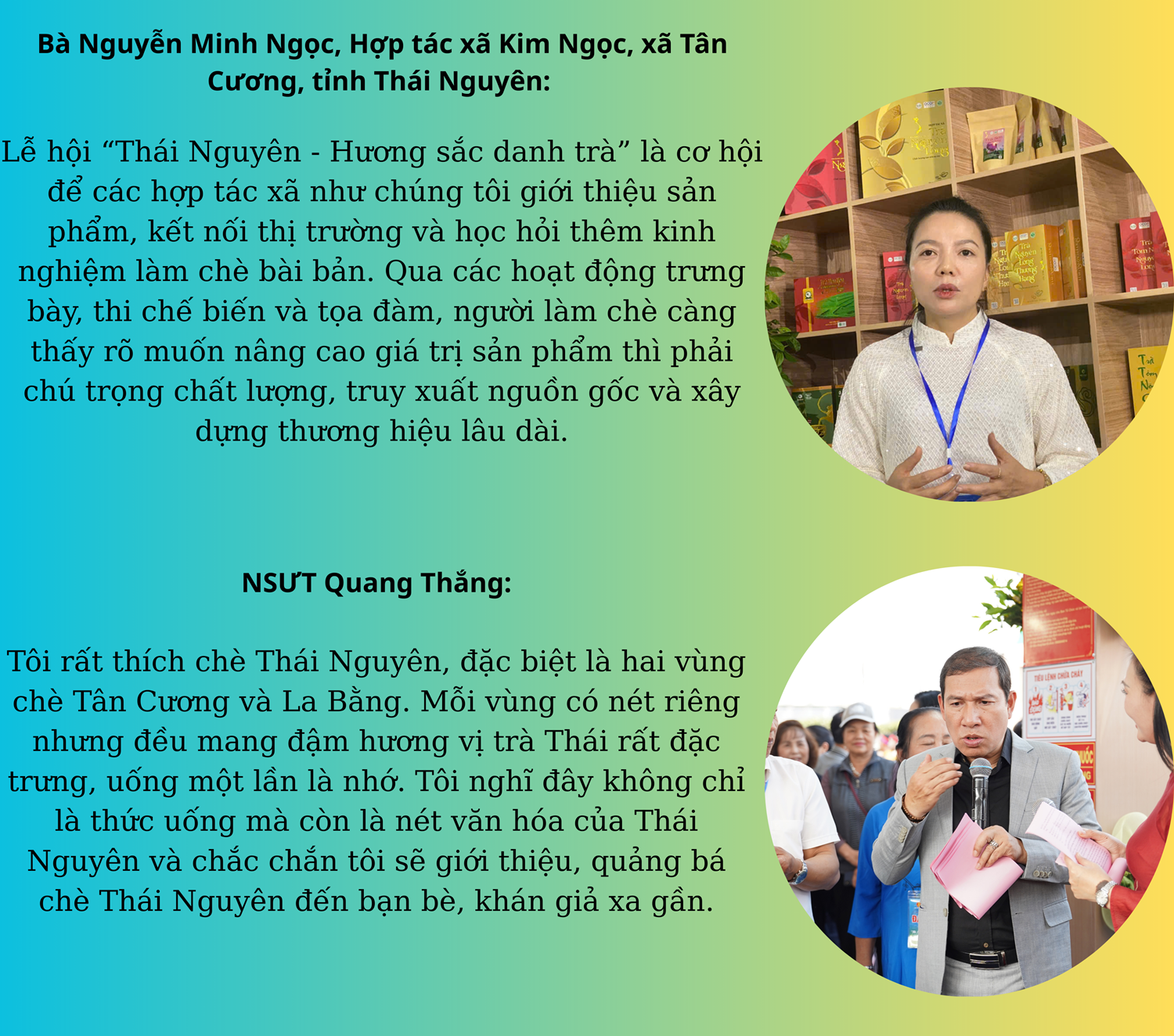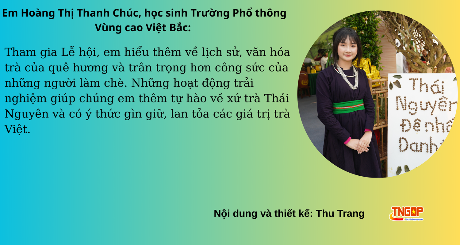 Lễ hội “Thái Nguyên - Hương sắc danh trà” đã khép lại, nhưng những dư âm của ngày hội vẫn lan tỏa. Không dừng lại ở những hoạt động tôn vinh cây chè và văn hóa trà, mà còn mở ra nhiều kỳ vọng về hướng đi lâu dài cho vùng đất “đệ nhất danh trà”. Qua cảm nhận của chuyên gia, du khách, người làm chè và thế hệ trẻ, Lễ hội đã góp phần làm giàu thêm bản sắc của Thái Nguyên và sẵn sàng vươn tầm quốc tế.
