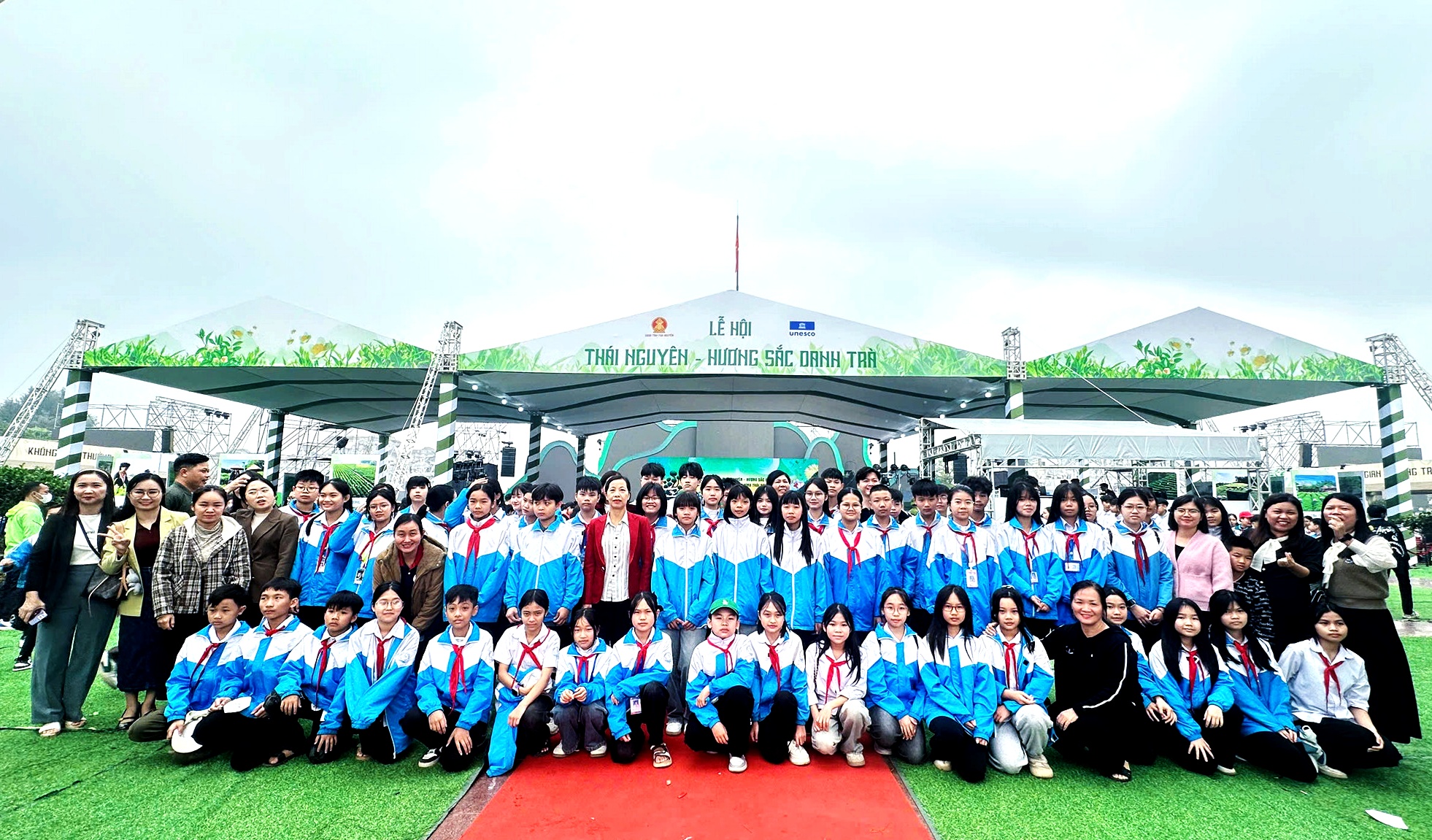 Cô và trò Trường THCS Tích Lương (phường Tích Lương) trải nghiệm tại Lễ hội "Thái Nguyên - Hương sắc danh trà"