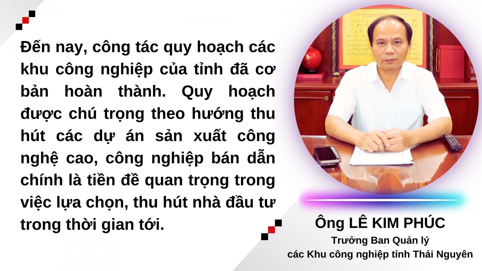 Kết quả, trong năm 2023, HĐND tỉnh đã thông qua Nghị quyết về nhiệm vụ quy hoạch chung, quy hoạch phân khu và quy hoạch chi tiết tỷ lệ 1/2.000 các KCN Đô thị Dịch vụ Phú Bình, KCN Đô thị Dịch vụ Tây Phổ Yên, KCN Thượng Đình, KCN Yên Bình 2, KCN Yên Bình 3 và Khu công nghệ thông tin tập trung Yên Bình.