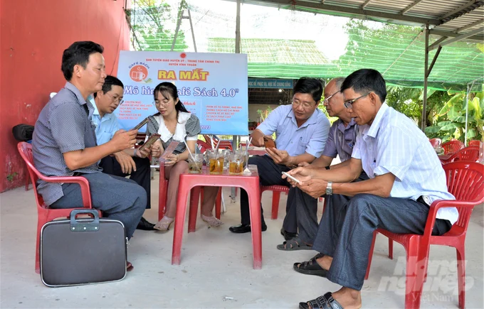 Với mô hình cà phê Sách 4.0, huyện Vĩnh Thuận đã số hóa công tác tuyên truyền về tái cơ cấu ngành nông nghiệp, phát triển kinh tế tập thể và xây dựng nông thôn mới mang lại hiệu quả cao. Ảnh: Trung Chánh.