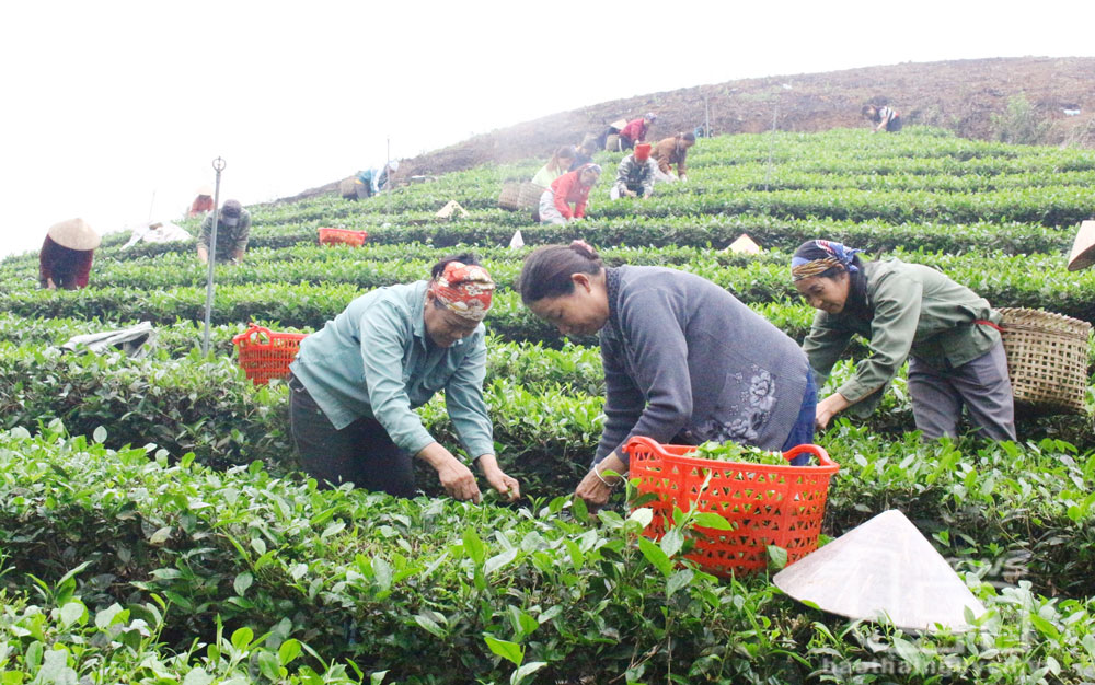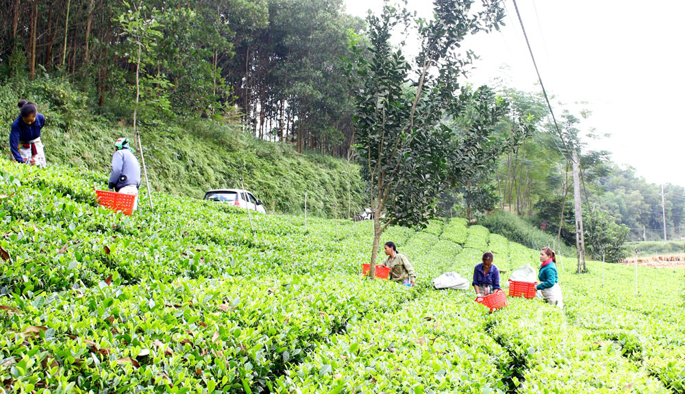 Các thành viên Hợp tác xã chè Văn Hán thu hái chè