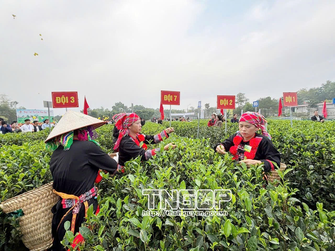 Các đội bước vào phần thi hái chè với thời gian 30 phút