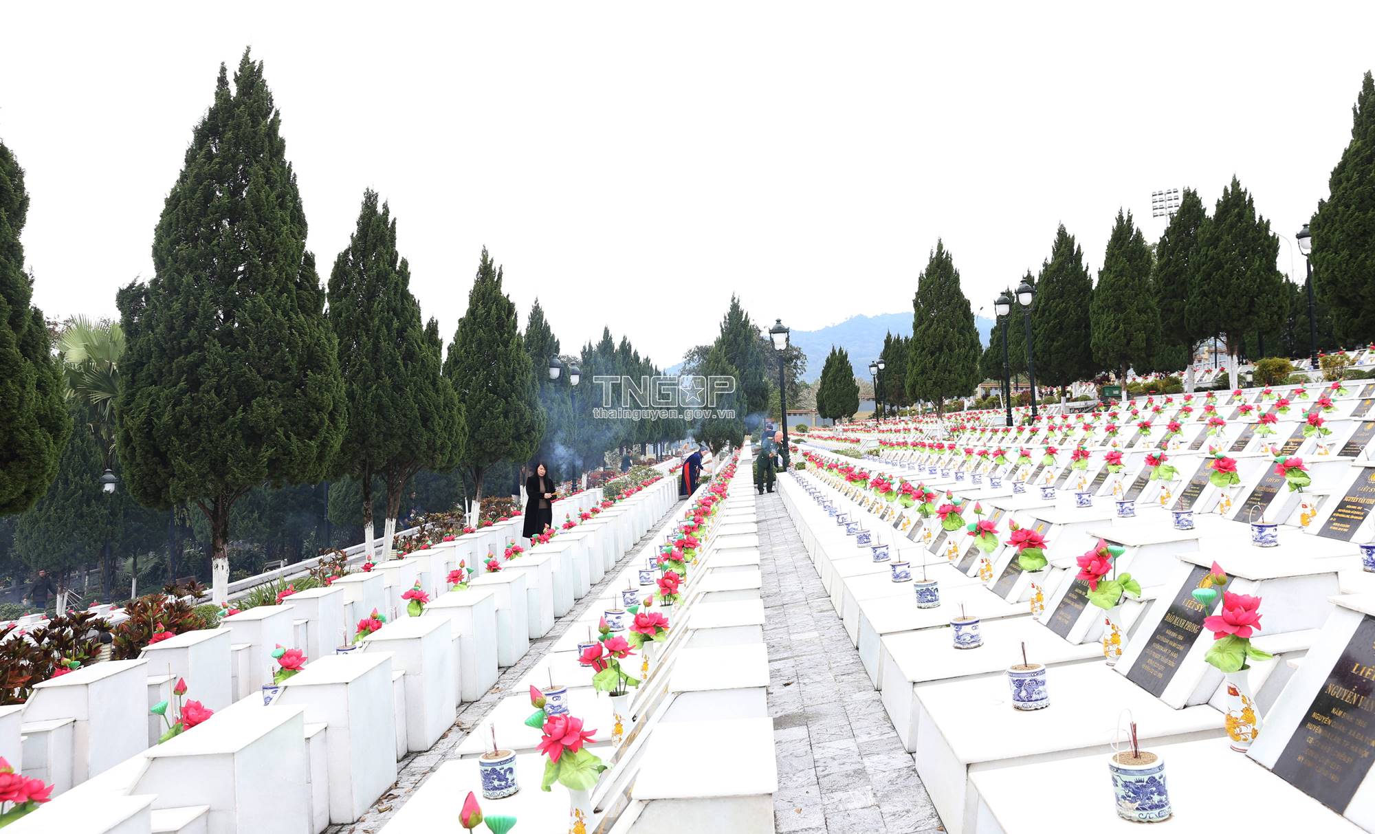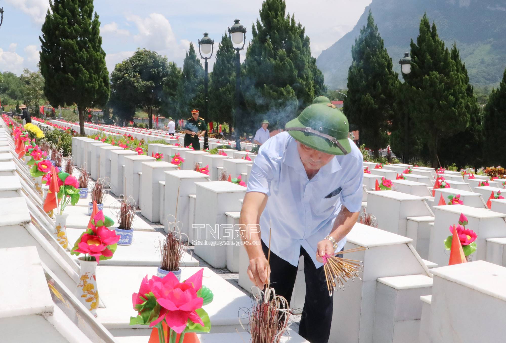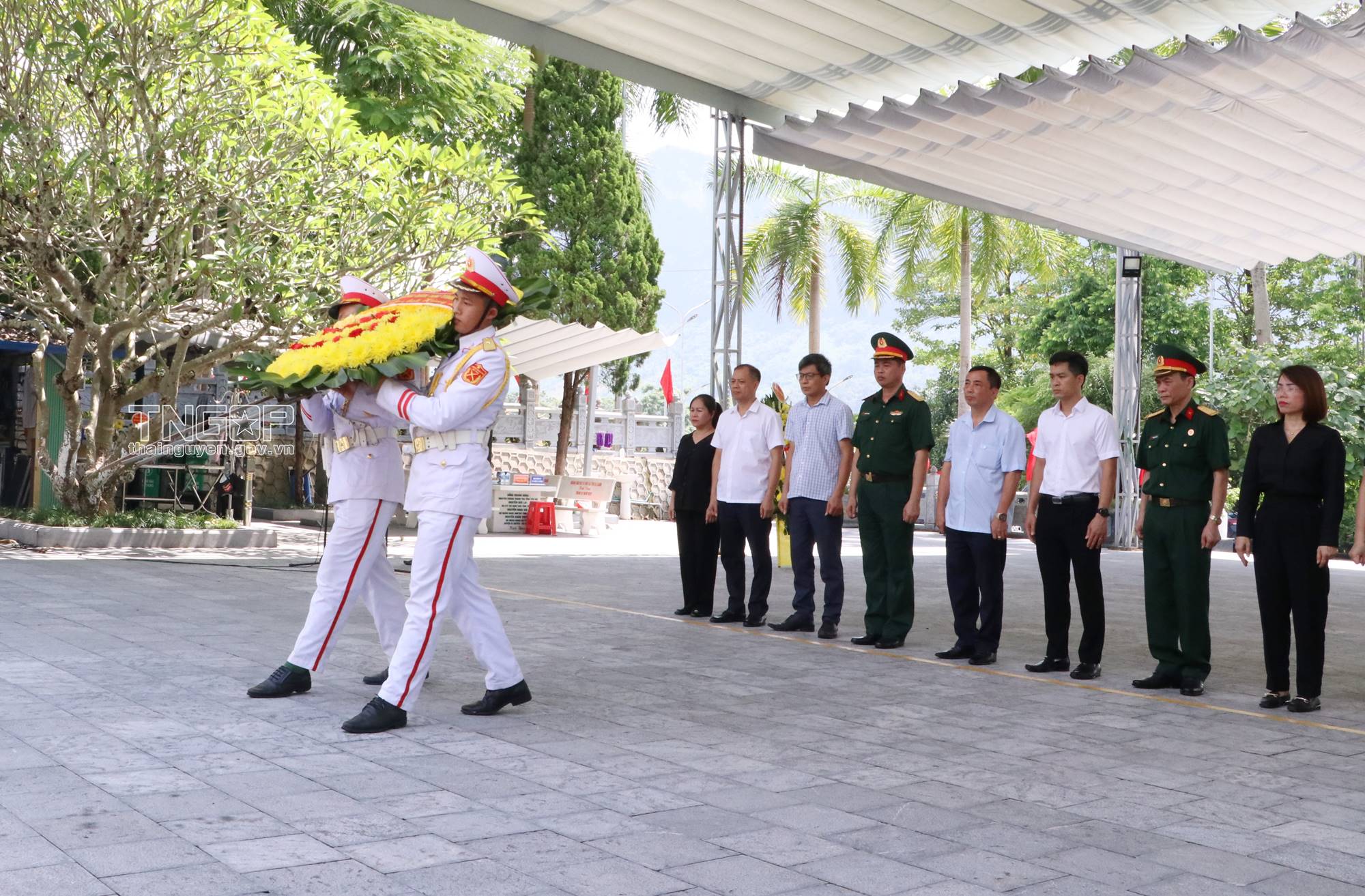 타응웬성 대표단은 비쑤옌 국립 순교자 묘지 방문함에 대한 사진