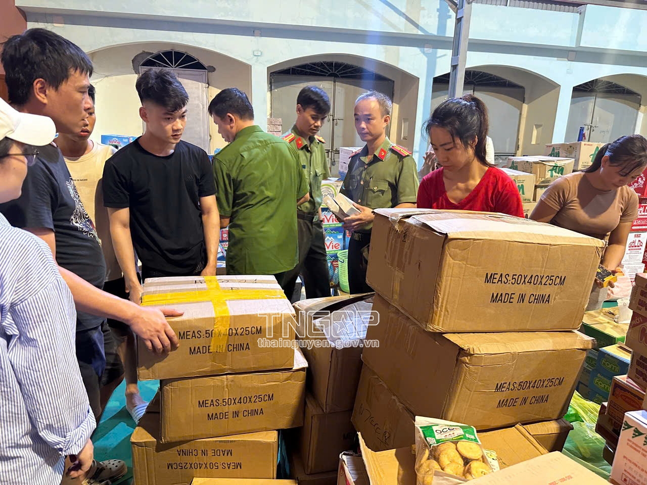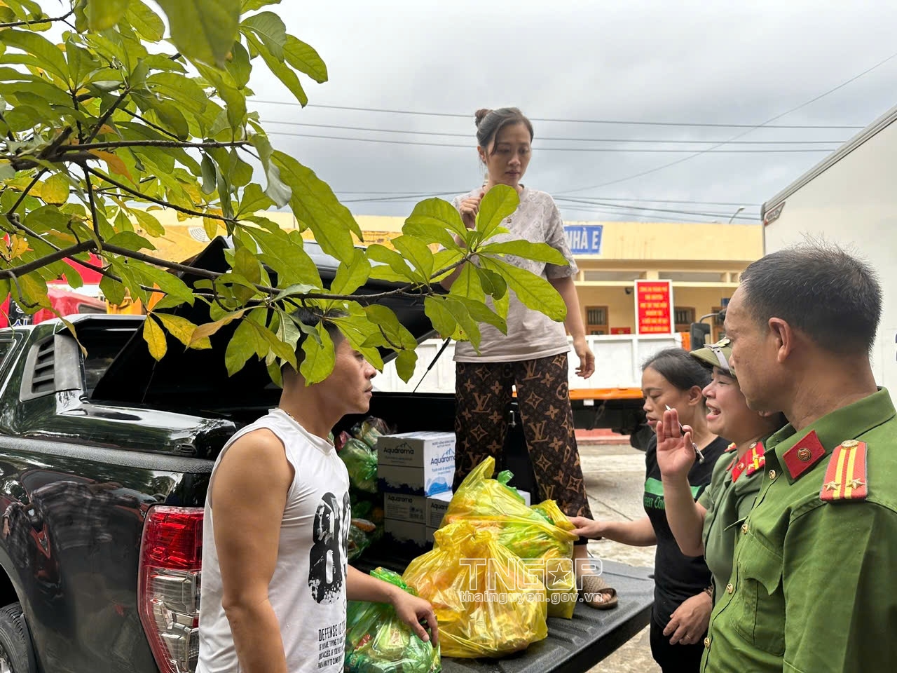 수많은 사람은 Thai Nguyen 시 공안 본부에서 필수품 공급 작업을 수행하는 공안을 도와 주었음