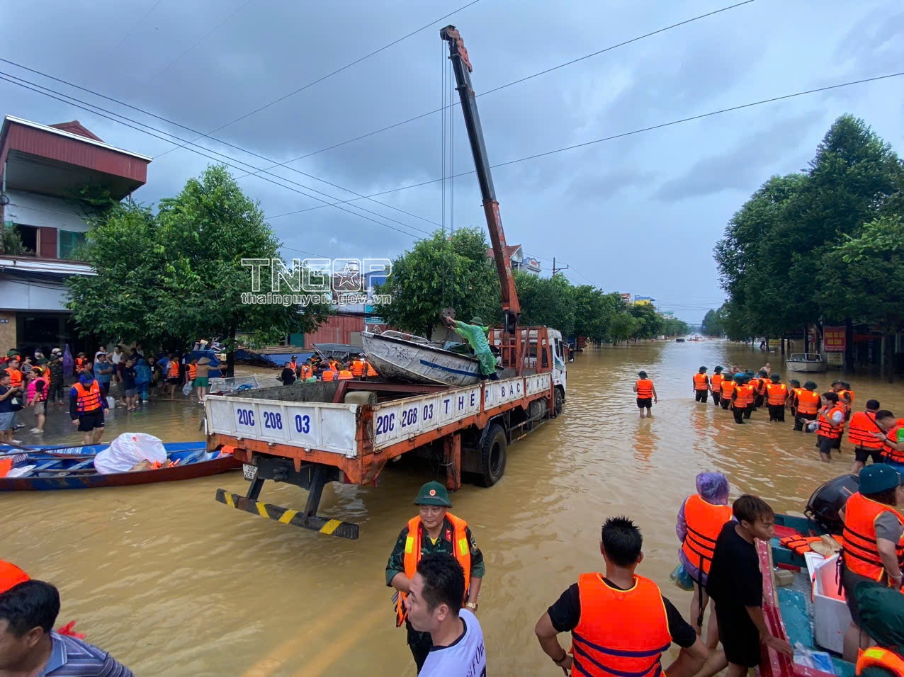 Thai Nguyen시 인민위원회의 정보에 따르면 Thai Nguyen시는 9월 10일 오전 10시 기준 35개 단체와 후원자의 모터보트 1대, 풍선보트 115대, 구명조끼 1,980개, 손전등 2,561개, 우유 793개 상자, 각종 빵 450개 상자, 식수 320개 상자, 건조식품 61개 상자, 라면 749개 상자, 옷 12개 포대, 손소독제 2개 상자 등을 지원을 받았다. 당국은 이런 구조품을 받아 해당 지역의 30개 이상의 침수된 지역에 배포했다. 현재 구조품을 받고 있다.