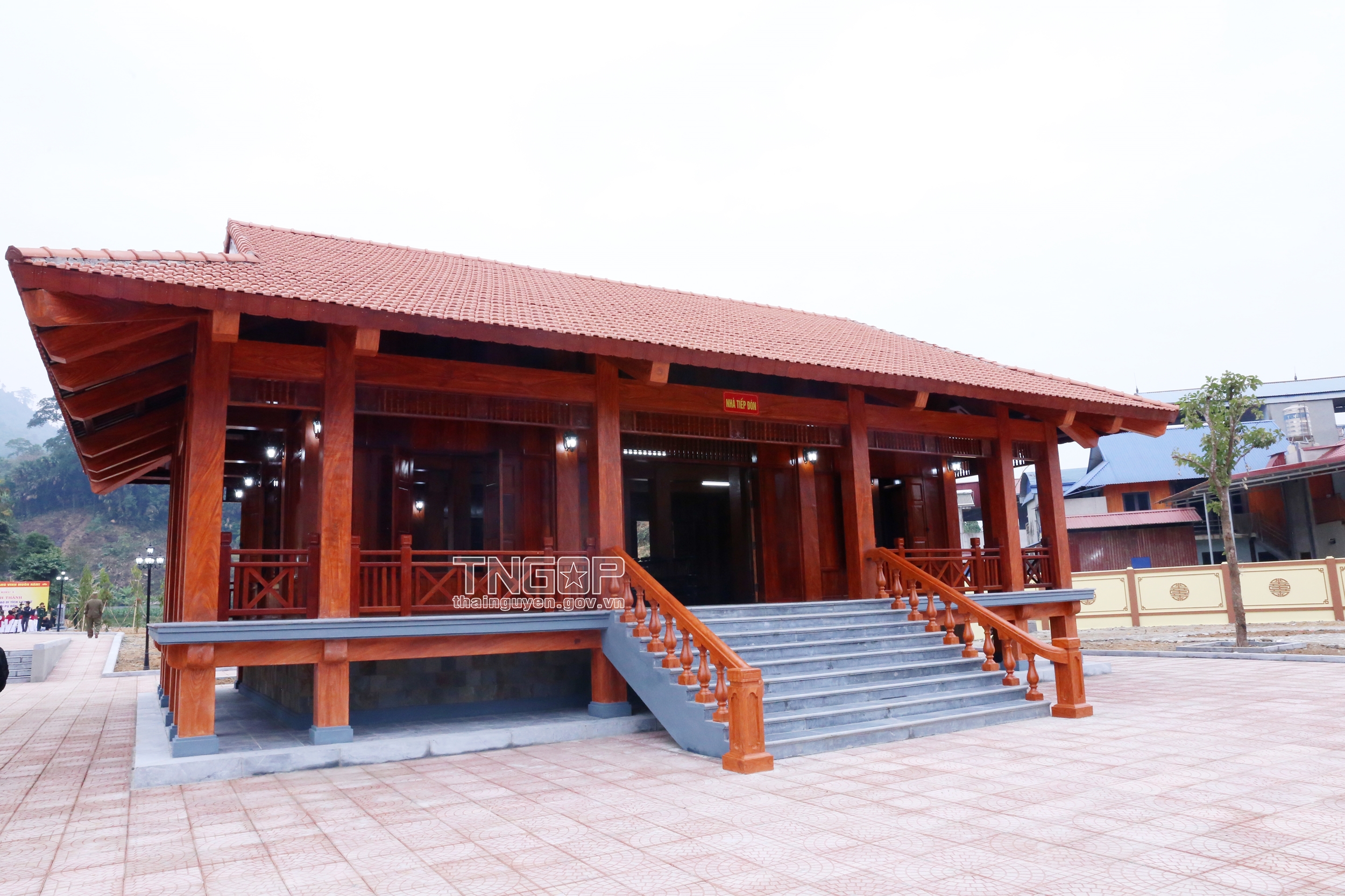 게스트 리셉션 하우스는 Dinh Hoa Tay족의 전통적인 고상 가옥 스타일로 건축됨