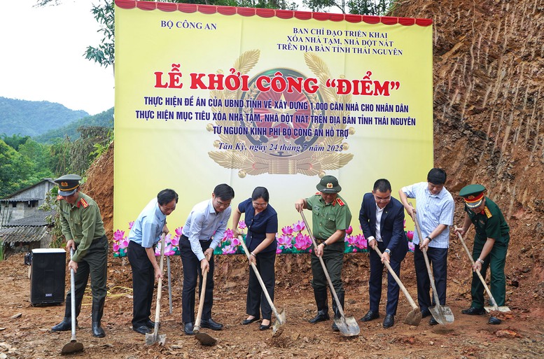 Chiều 24/7, tại xã Tân Kỳ, UBND tỉnh Thái Nguyên phối hợp với Bộ Công an tổ chức Lễ khởi công xây dựng nhà ở cho hộ nghèo, hộ có hoàn cảnh khó khăn. Đây là công trình “điểm” trong triển khai Đề án xóa nhà tạm, nhà dột nát trên địa bàn tỉnh, sử dụng nguồn kinh phí hỗ trợ của Bộ Công an.