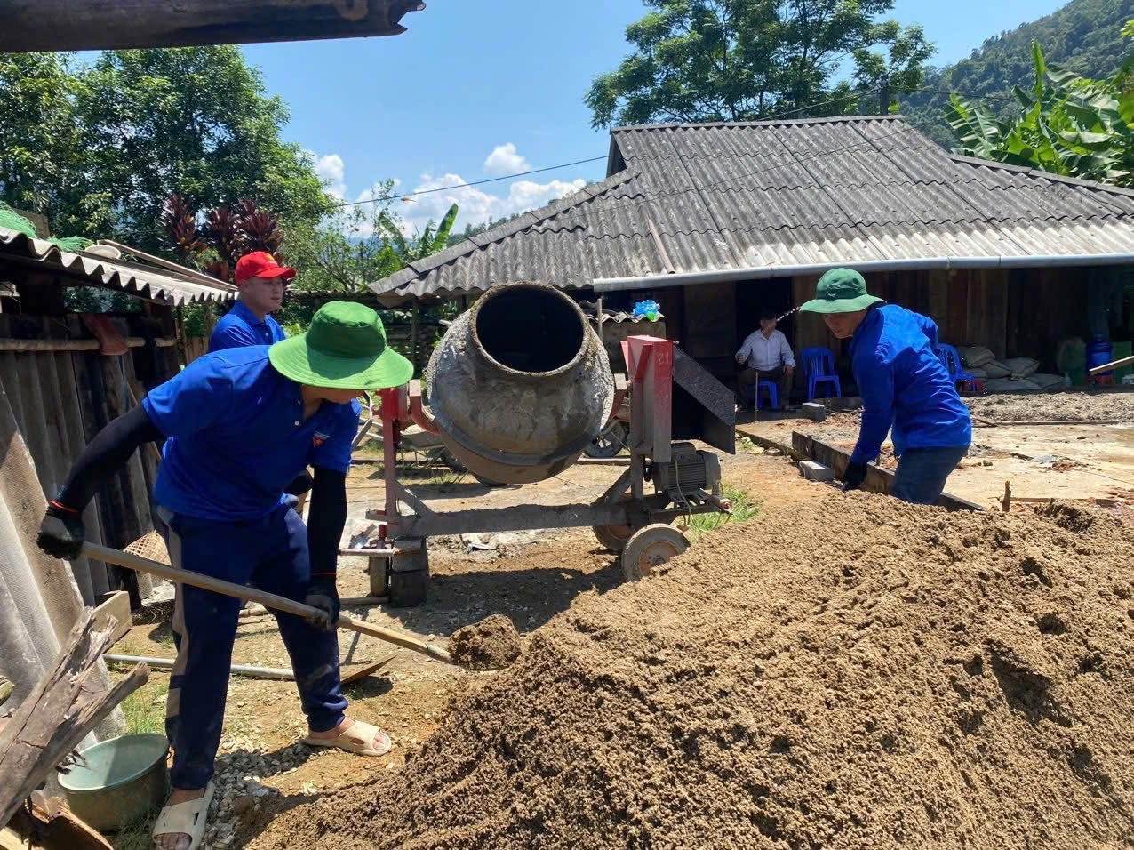 Lực lượng thanh niên xã Cao Minh hỗ trợ người dân xây dựng nhà