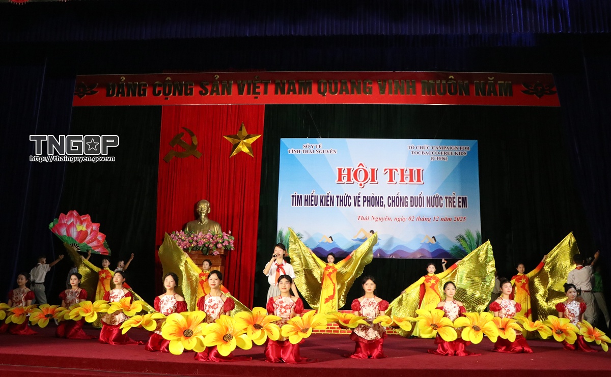 Sáng 2/12, tại Trung tâm Dịch vụ tổng hợp xã Phú Bình, Sở Y tế tỉnh Thái Nguyên phối hợp với Tổ chức Campaign for Tobacco Free-Kids tổ chức Hội thi tìm hiểu kiến thức về phòng, chống đuối nước trẻ em.
