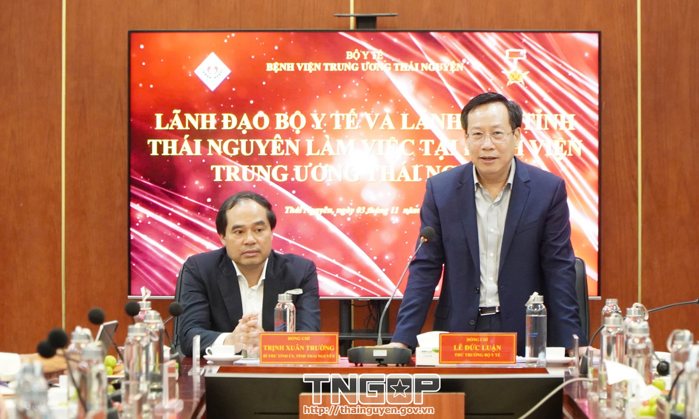 Chiều 3/11, Thứ trưởng Bộ Y tế Lê Đức Luận cùng đồng chí Trịnh Xuân Trường, Bí thư Tỉnh ủy Thái Nguyên đã có buổi làm việc với Bệnh viện Trung ương Thái Nguyên về việc thực hiện kế hoạch đầu tư công trung hạn giai đoạn 2021 - 2025 và kế hoạch đầu tư công trung hạn giai đoạn 2026 - 2030.