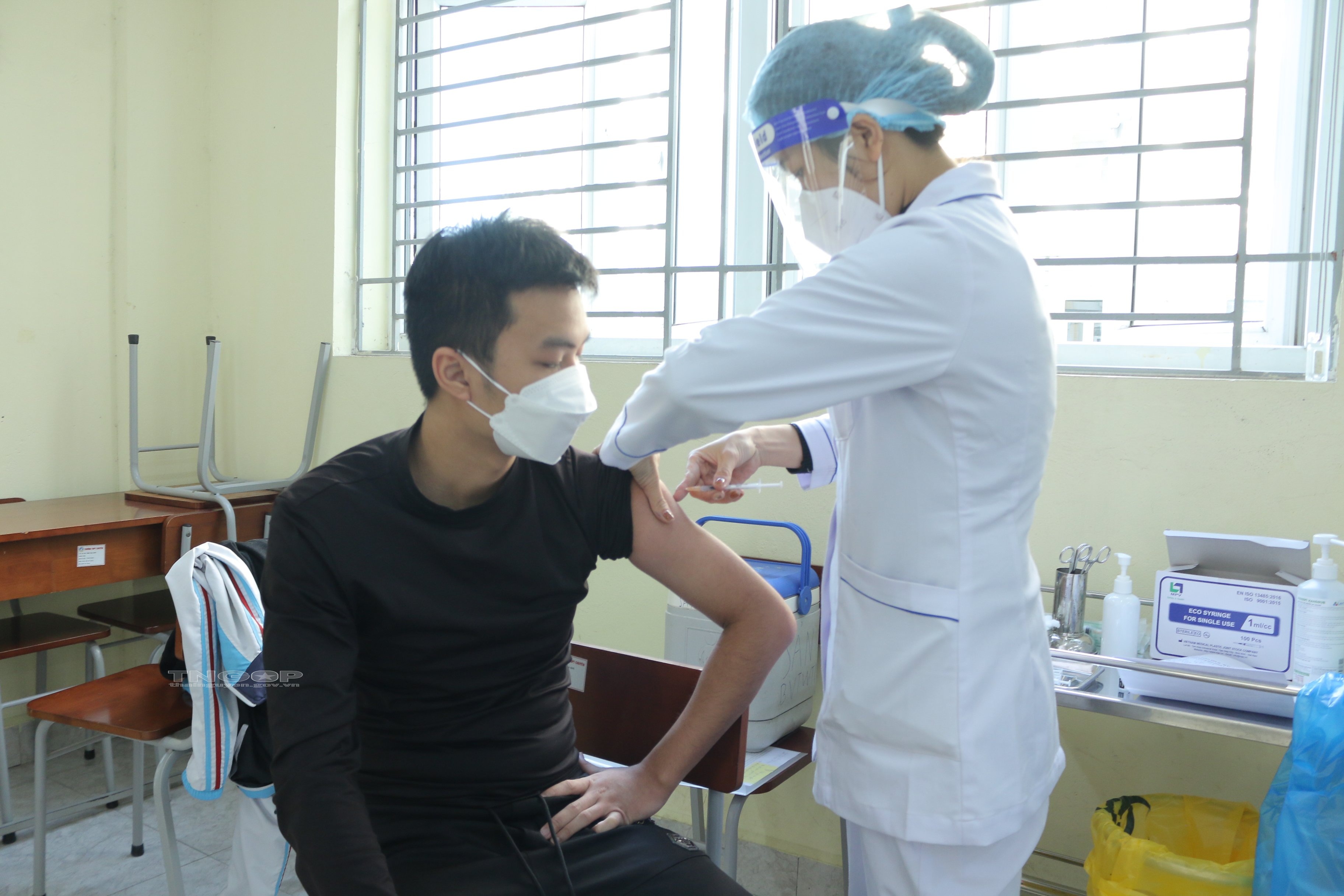 Nhân viên Bệnh viện Trung ương Thái Nguyên thực hiện công tác tiêm chủng vắc xin phòng COVID-19