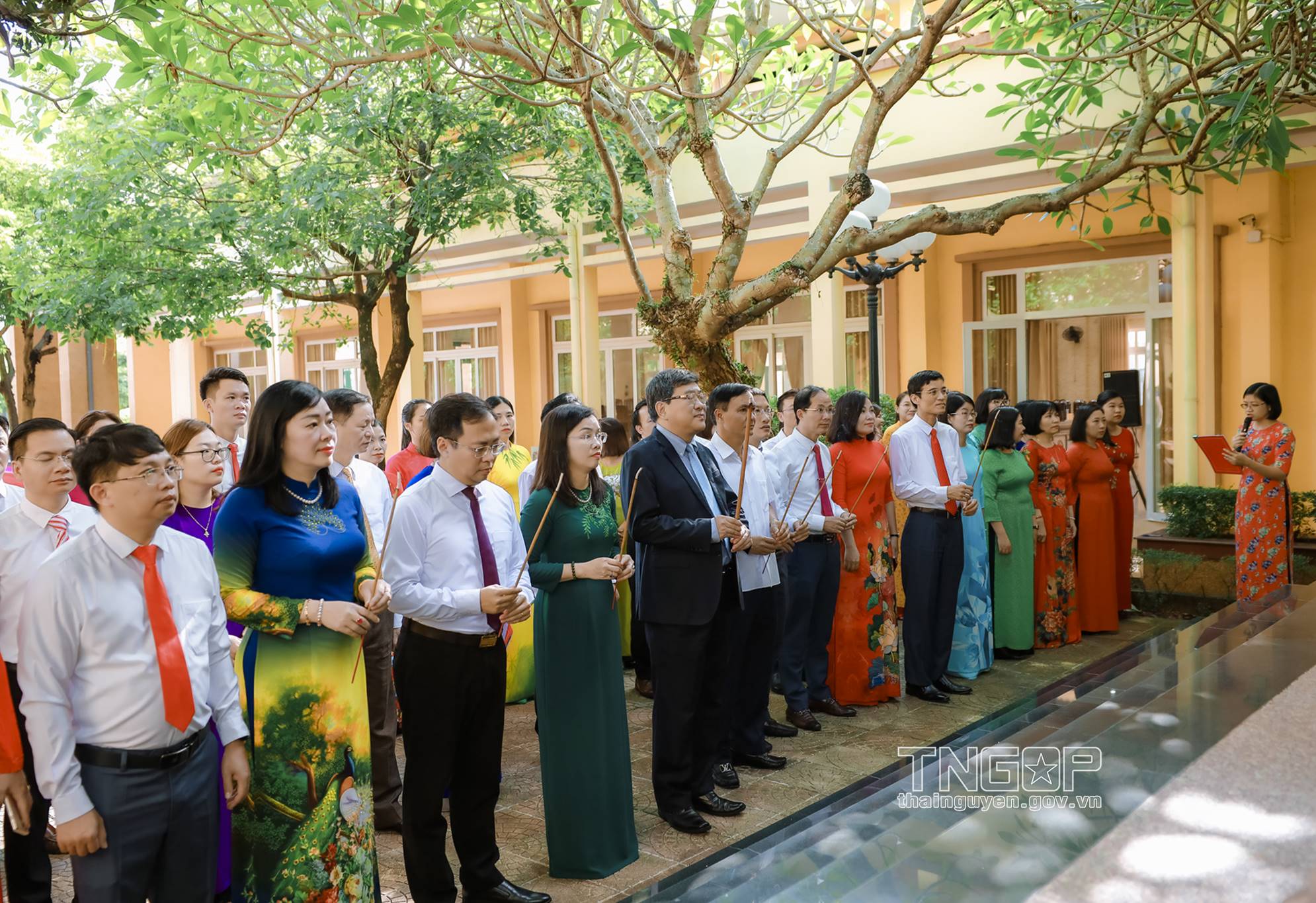 Tập thể lãnh đạo, cán bộ, viên chức Trường Chính trị tỉnh dâng hương tưởng niệm Chủ tịch Hồ Chí Minh tại nơi tưởng niệm Người trong khuôn viên Nhà trường